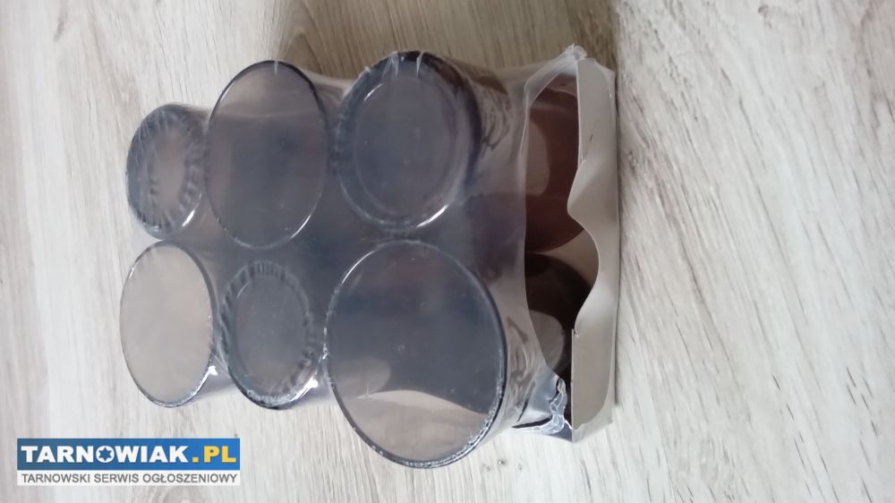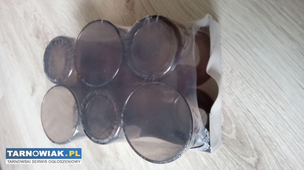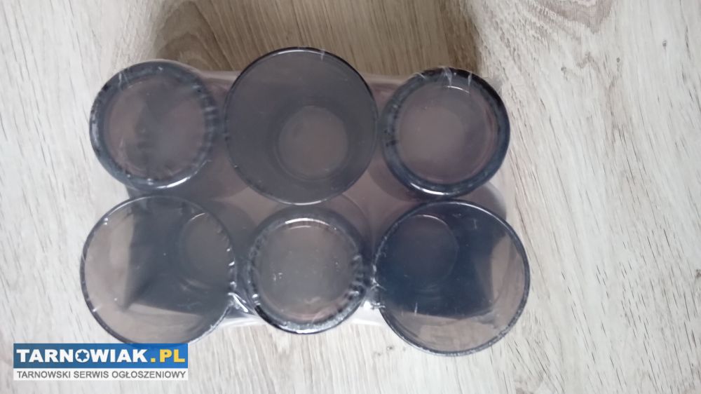 Nowe zafoliowane literatki ze szkła dymnego 6sztuk wysokość 8,5cm średnica 6cm za 17zl