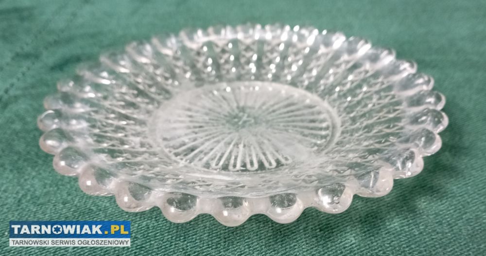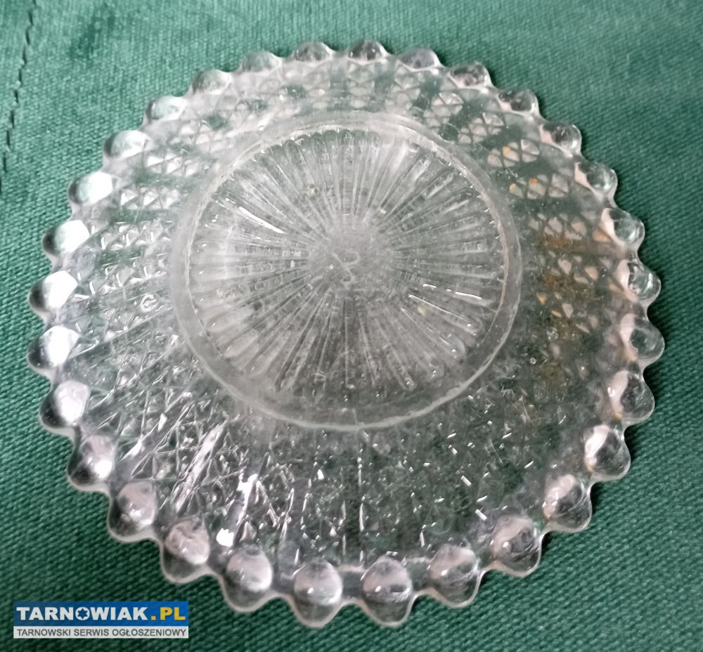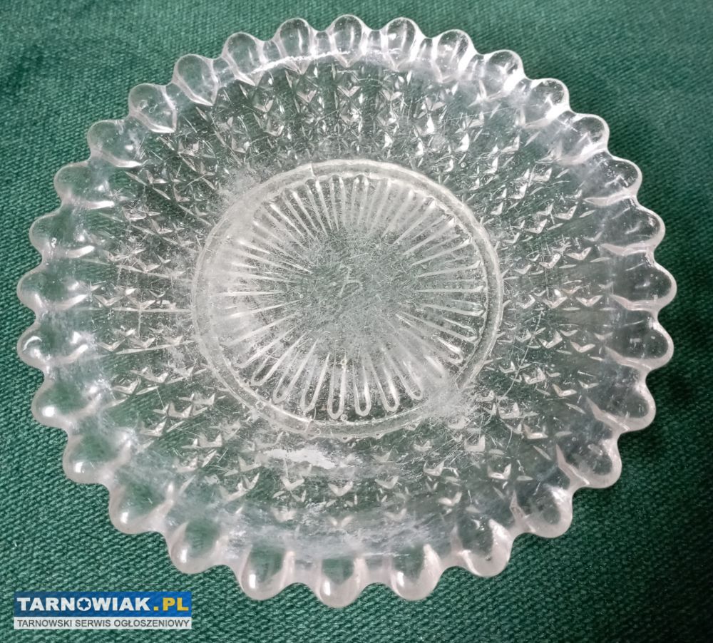 Talerzyk deserowy spodek z przedwojennego szkła prasowanego