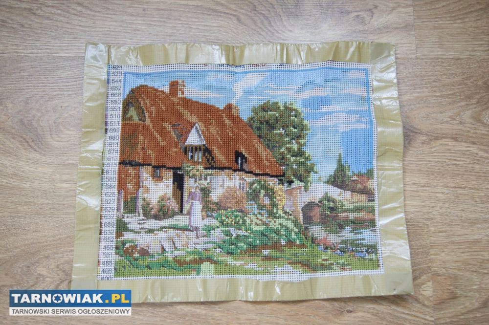 - 286. Haft gobelinowy - Stare miasto częściowo wyszyty + nici ...