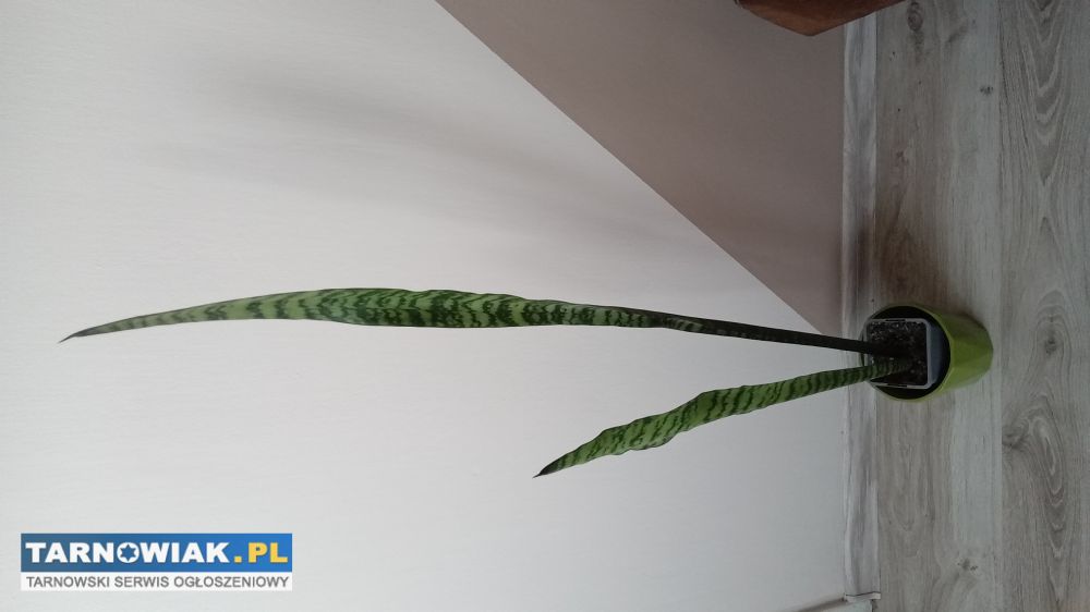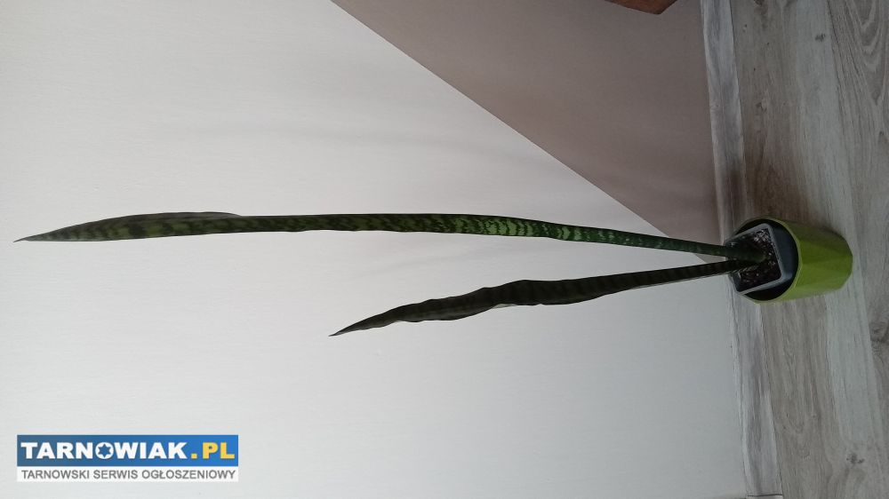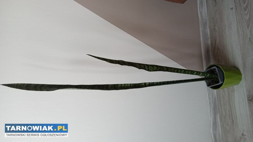 Sprzedam kwiatka z własnej hodowli sansewieria inaczej języki teściowej, ma dużo pożytecznych właściwości, najważniejsza to że bardzo dobrze oczyszcza powietrze, sadzonka dobrze ukorzeniona wysokość 105 cm za 12zł