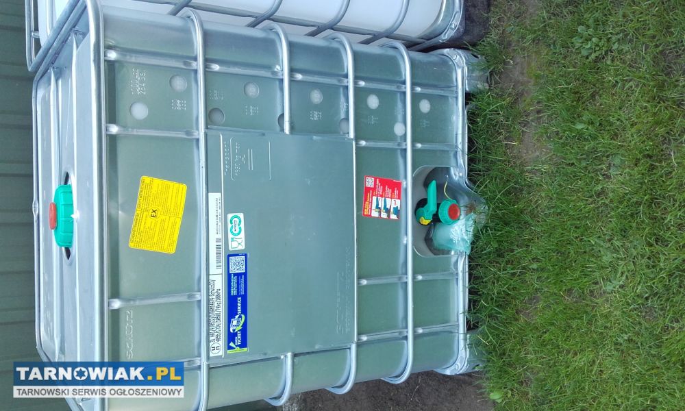 Witam.sprzedam zbiornik 1000l pojemności spożywczy nadający się na wodę pitną.posiada atest.jak również świetnie nada się na paliwo czy do morsowania gdyż jest okuty blacha.orginal.nie po zadnej chemi.polecam