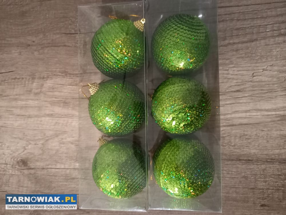 Sprzedam 6 sztuk cudnych, niepowtarzalnych bombek w kolorze zielonym. Rozmiar widoczny na zdjęciu. Zapraszam do obejrzenia. Możliwość wysyłki.