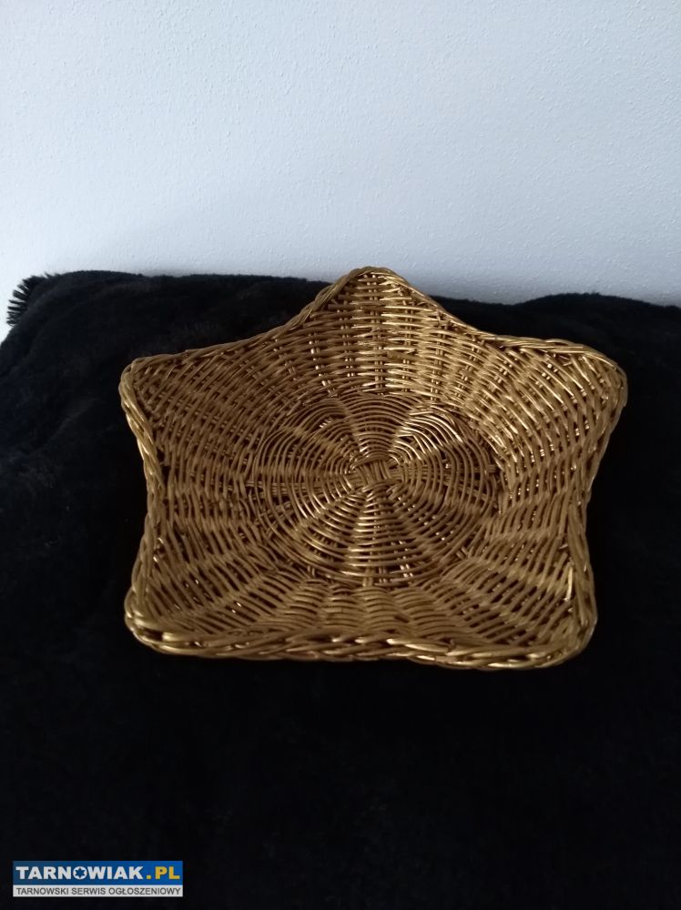 Sprzedam śliczną podstawkę, koszyczek w kształcie gwiazdy w kolorze złotym. Piękna ozdoba świątecznego stołu, można na niej ułożyć bombki, światełka lub pyszności świąteczne. Zapraszam do obejrzenia. Możliwość wysyłki.