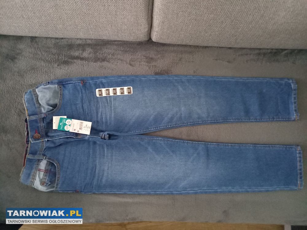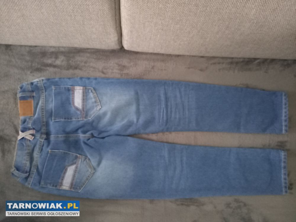 Sprzedam spodnie w rozmiarze 131-143 cm, w kolorze niebieskim, regulowany pasek. Spodnie są nowe, z metką. Całkowita dł. spodni ok. 90 cm, natomiast dł. od kroku ok. 68 cm. Skład spodni podany na zdjęciu (dzięki wysokiej zawartości bawełny spodnie są bardzo mięciutkie). Zapraszam do obejrzenia i zmierzenia. Możliwość wysyłki.