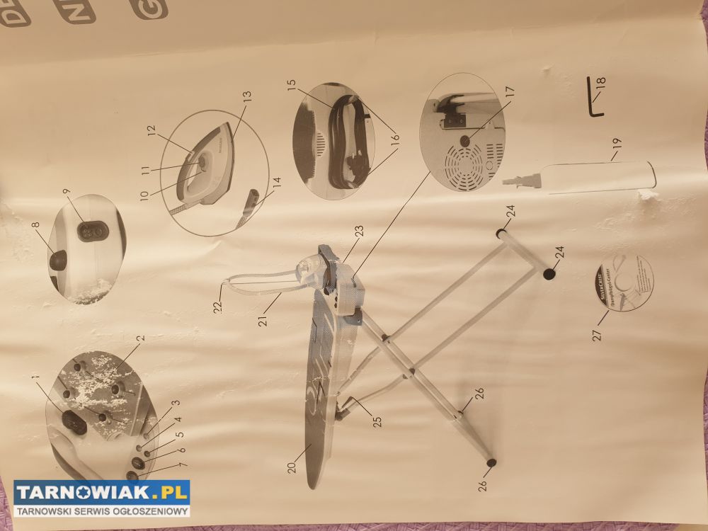 Do sprzedania deska do prasowania. W komplecie:deska,źelazko,butelka do wody, uchwyt na sznur. Deska ma wbudowany zbiornik na wodę więc przy prasowaniu para jest od spodu prasowanych ubrań i z góry od żelazka. Bardzo stabilna.