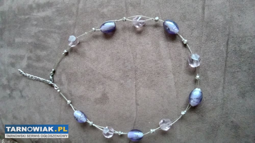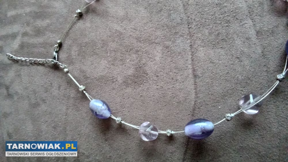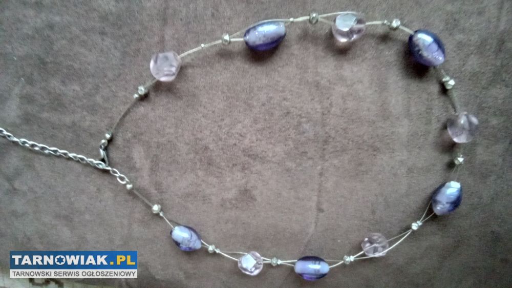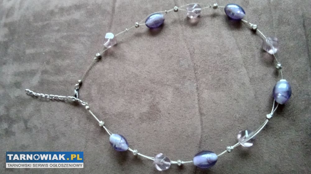 Naszyjnik na drucikach zapinany z tyłu z ładnymi fioletowymi kamieniami o długość całkowita 48cm,z 7cm łańcuszkiem umożliwiający dopasowanie długości za 10zl