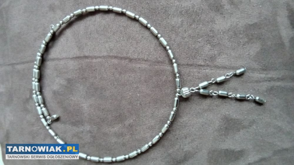 Śliczny naszyjnik z wisiorkami na spężynujacym druciku co pozwala dostosować się do każdego rozmiaru szyi o długości 40cm,długość wisiorków 4i5cm ,nie rdzewieje i nie traci koloru za 16zł