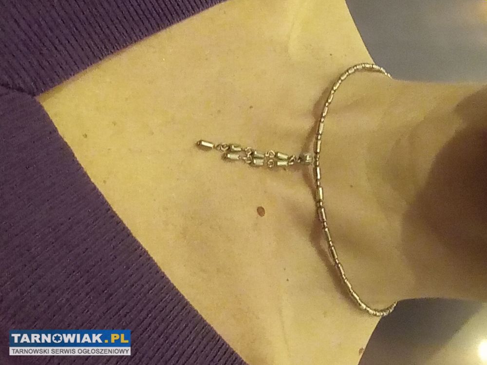 Śliczny naszyjnik z wisiorkami na spężynujacym druciku co pozwala dostosować się do każdego rozmiaru szyi o długości 40cm,długość wisiorków 4i5cm ,nie rdzewieje i nie traci koloru za 16zł