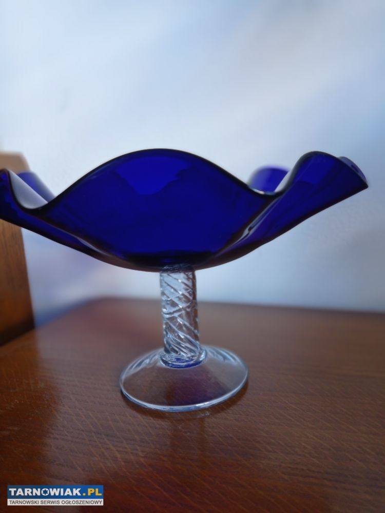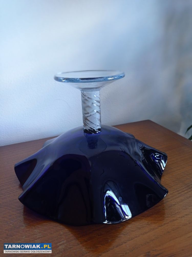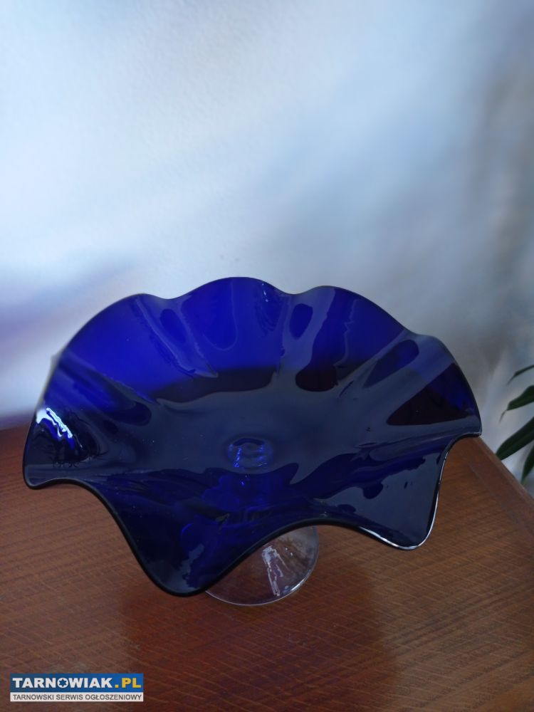 - 1. Misa szklana,kobaltowa, prążkowana Średnica 30cm Wysokość ...