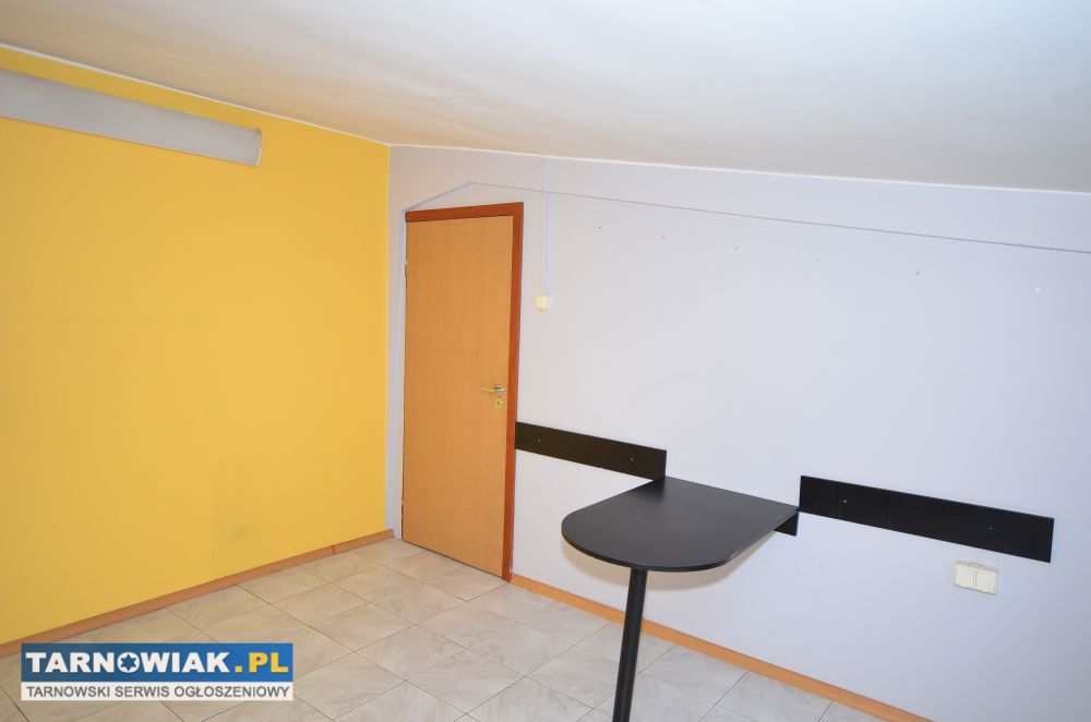 Do wynajmu 6 lokali od 13 do 40 m² w ścisłym centrum Tarnowa (okolice Świtu). Lokale znajdują się na poddaszu parterowego budynku usługowego. Lokalizacja oraz infrastruktura daje ogromne możliwość wykorzystania pod różnego rodzaju działalność od biurowej poprzez usługową. Standard podstawowy. Jest możliwość podniesienia standardu na własny koszt. Do użytku toalety ogólne. Ogrzewanie elektryczne. Właściciel zapewnia dostęp do sieci informatycznej, telekomunikacyjnej oraz miejsca parkingowe. Doskonałe naświetlenie dzienne każdego z pomieszczeń. Szeroka i nowoczesna klatka schodowa. Atrakcyjna cena - 22 zł/m² (brutto). Do czynszu należy doliczyć koszt oświetlenia i ogrzewania. Średnie zużycie prądu wynosi 200 zł brutto miesięcznie. Zapraszamy na prezentację. Kontakt do osoby prowadzącej: 604 089 008.