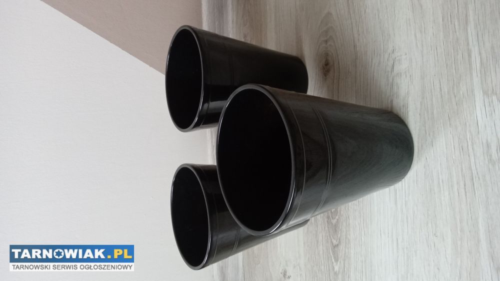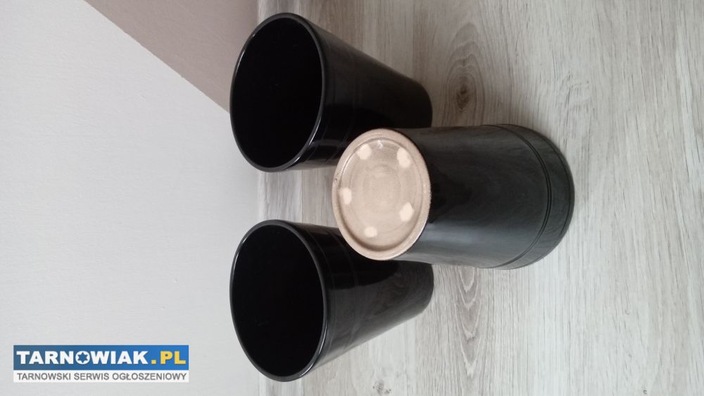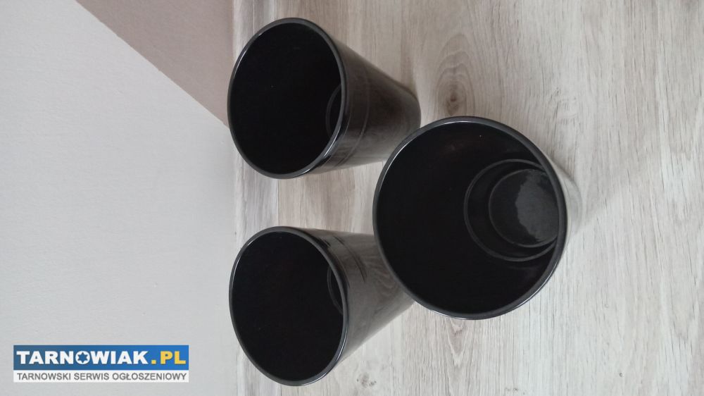 Trzy nowe masywne,ceramiczne loftowe, czarne osłonki do kwiatków szerokość u góry 13cm u dołu 9cm,wysokość 17cm kupione po 18zl/szt sprzedam po 9zl/szt lub całość 25zl