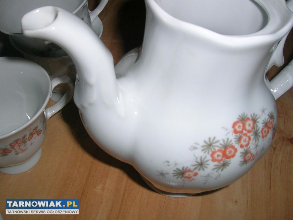 6 kubeczków (2 z lekkim2 mm ubytkiem), 6 talerzyków, dzbanek wys. 15cm bez pokrywki