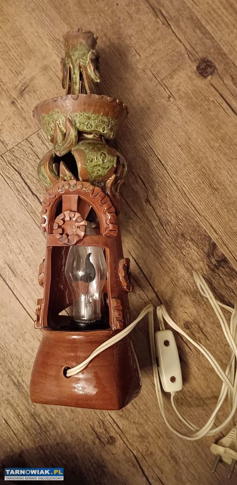 Dekoracyjny elektryczny świecznik nocny Stary zamek Ceramika lata 70 te z żarówką imitującą świecę
