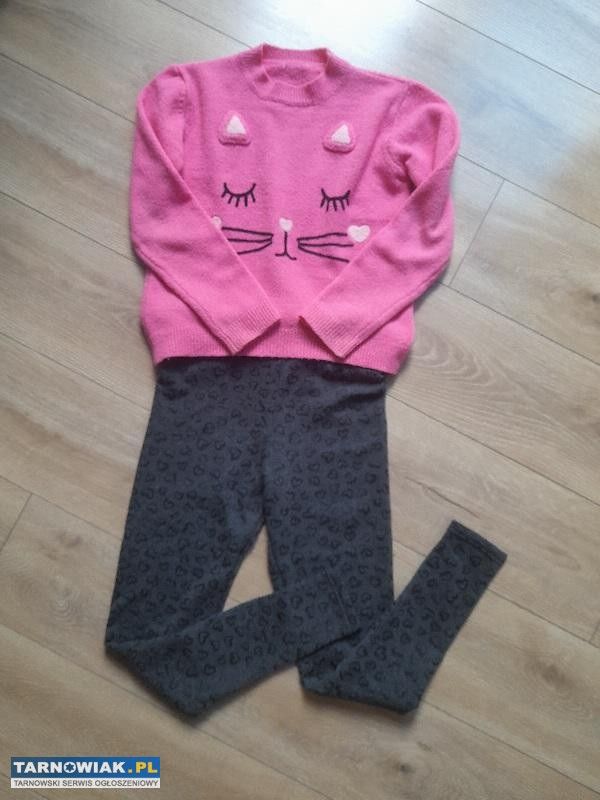 Sprzedam getry ocieplenie czarne 128 długość 75cm szare 134 długość 79cm cena za sztukę 15 zł sweterek biały 128/134 15 zł, różowy 140 cena 15 zł
