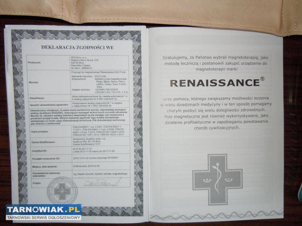 Kompletny aparat medyczny do domowej rehabilitacji, magnetoterapii czeskiej firmy RENAISSANCE.