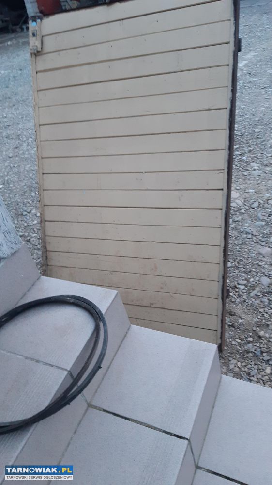 Sprzedam 2 sztuki solidnych drzwi z metalowymi okuciami i ramą, wypełnienie stanowi błazeria świerkowa.