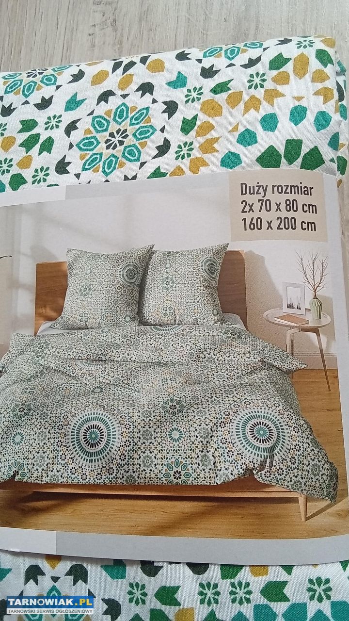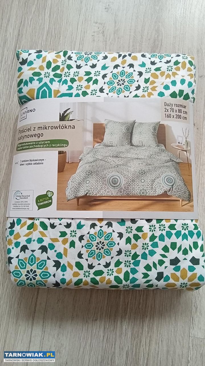 Śliczna w bialo zielone wzorki nowa pościel z szybkoschnacego mikrowłokna satynowego z eleganckim połyskiem wyprodukowana z materiałów pochodzących z recyklingu z zamkiem błyskawicznym rozmiar 160/200cm firmy LIVARNO za 38zl