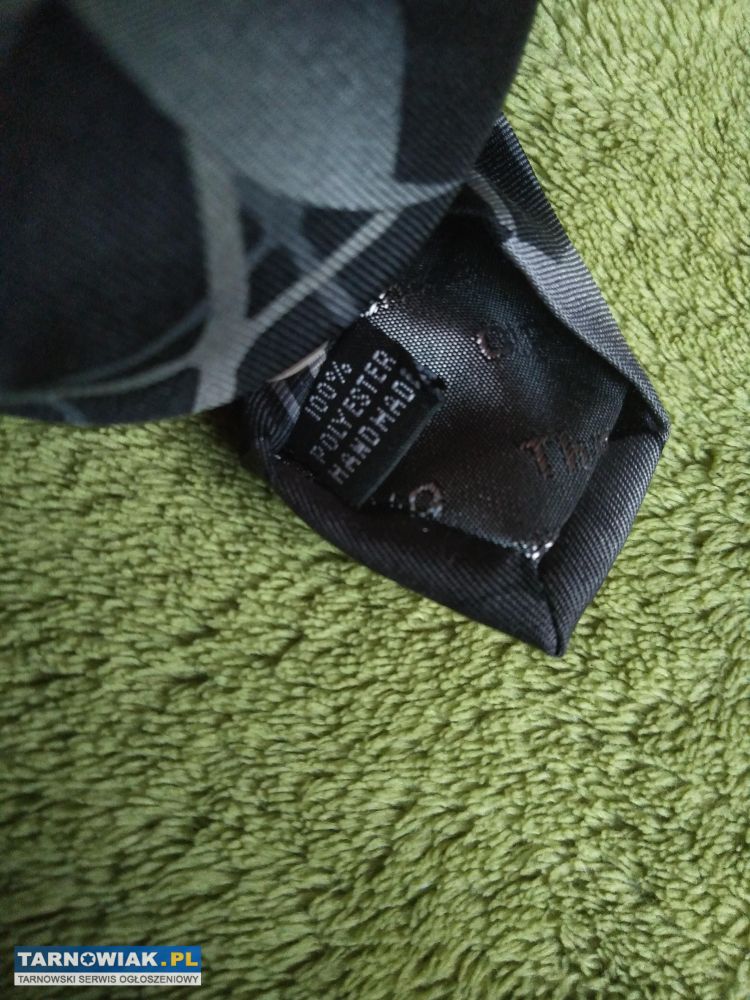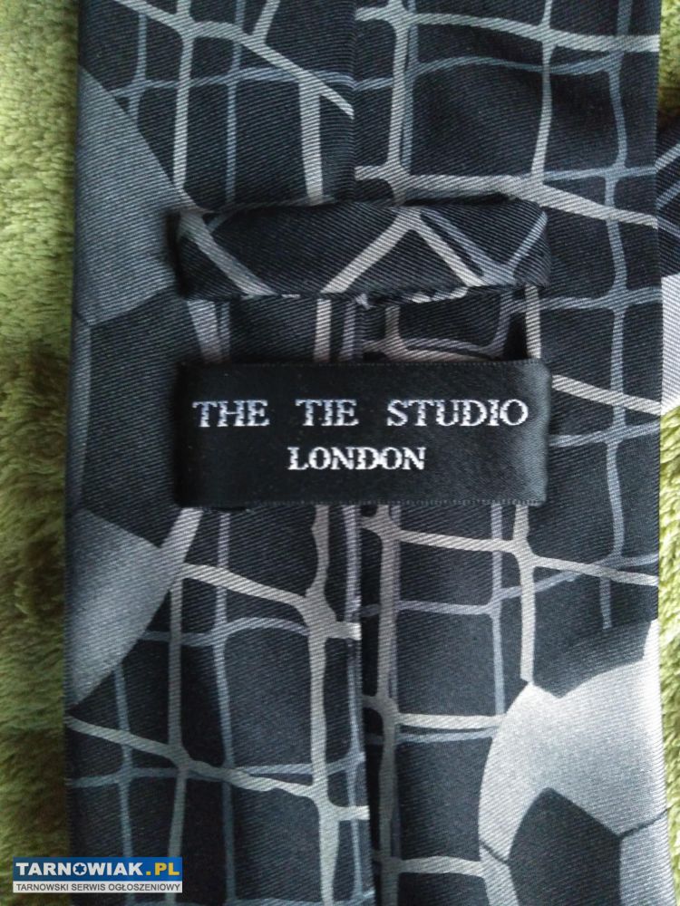 Witam, mam do sprzedania ciemnoszary krawat z wzorem w piłki marki The Tie Studio London. Jest jak nowy, bez żadnych plam lub skaz. Cały krawat bez wiązania ma długość ok. 149 cm i najdłuższą szerokość 9,5 cm, więc jest większy niż standardowe kwadraty.