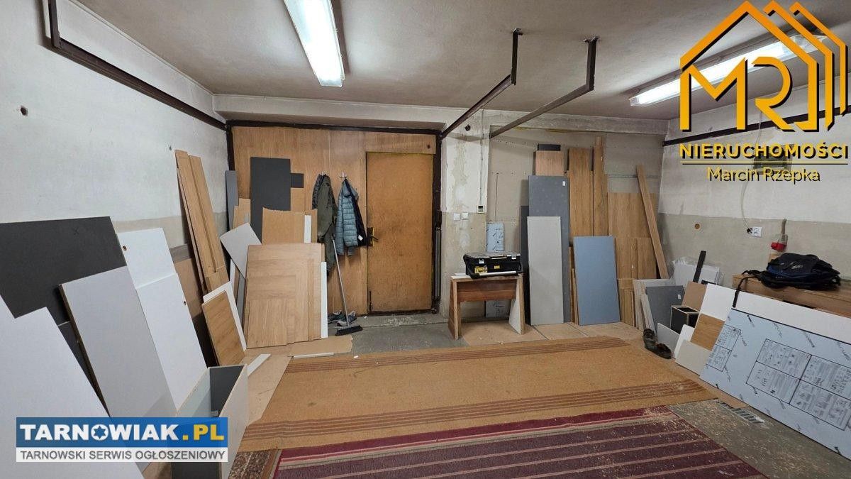 Parter o powierzchni ok. 60 m² stanowią dwa przestronne pomieszczenia, które obecnie wykorzystywane są jako zakład stolarski. Poddasze, o tej samej powierzchni, składa się z pokoju, kuchni oraz łazienki i z powodzeniem może być zaadaptowane na cele mieszkalne. Budynek podłączony jest do wszystkich mediów: prądu, wody, gazu oraz kanalizacji. Ogrzewanie zapewnia piecyk, natomiast ciepła woda pochodzi z podgrzewacza elektrycznego.
