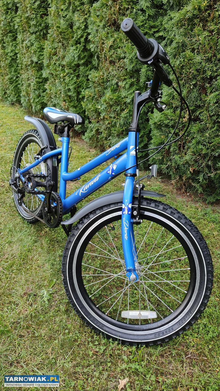 Sprzedam widoczny na zdjęciach rowerek Kands na kołach 20 cali. Rower w bdb stanie, sprawny. Kolor niebieski mat. Odbiór osobisty Lisia Góra ul Długa 39a