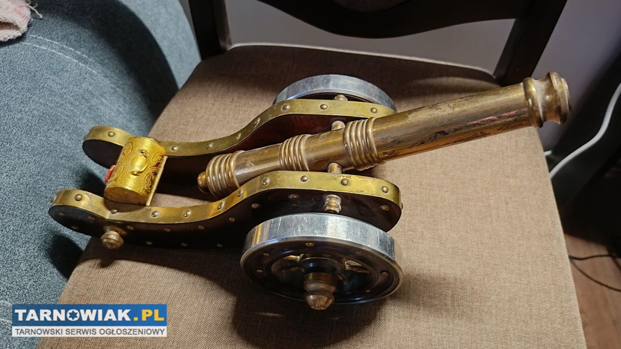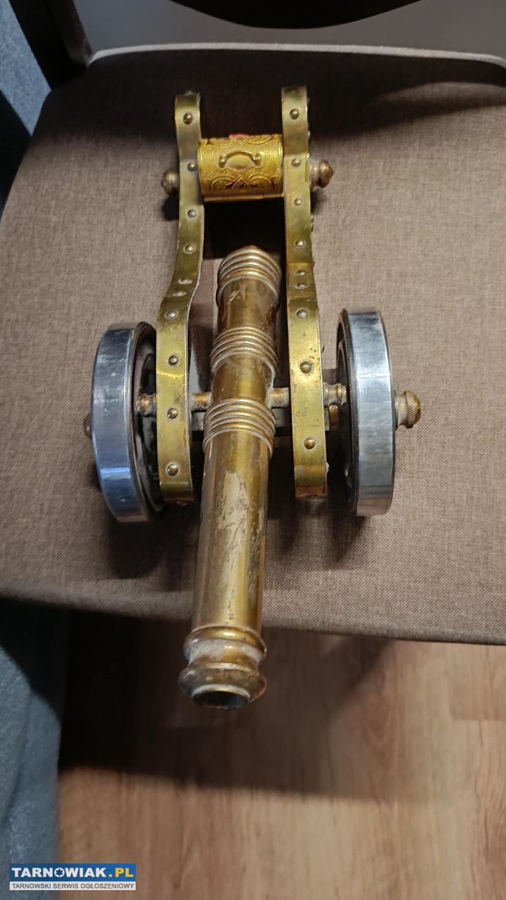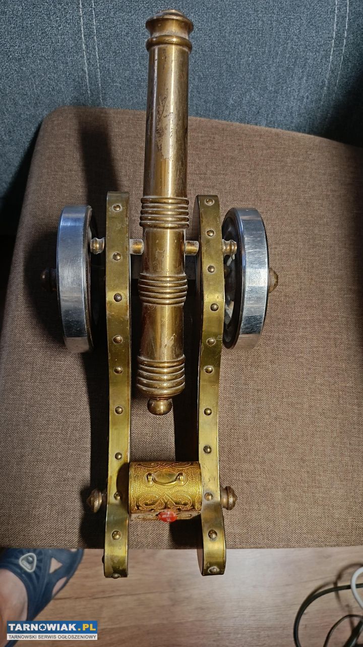 witam sprzedam armatę dla kolekcjonera z mosiądzu więcej na emiala lub tel..694265325 długosc lufy 26.5cm szerokosc z kołami 19cm srodek lufy 2cm dlugosc całej armaty to 36cm cena 250 zł