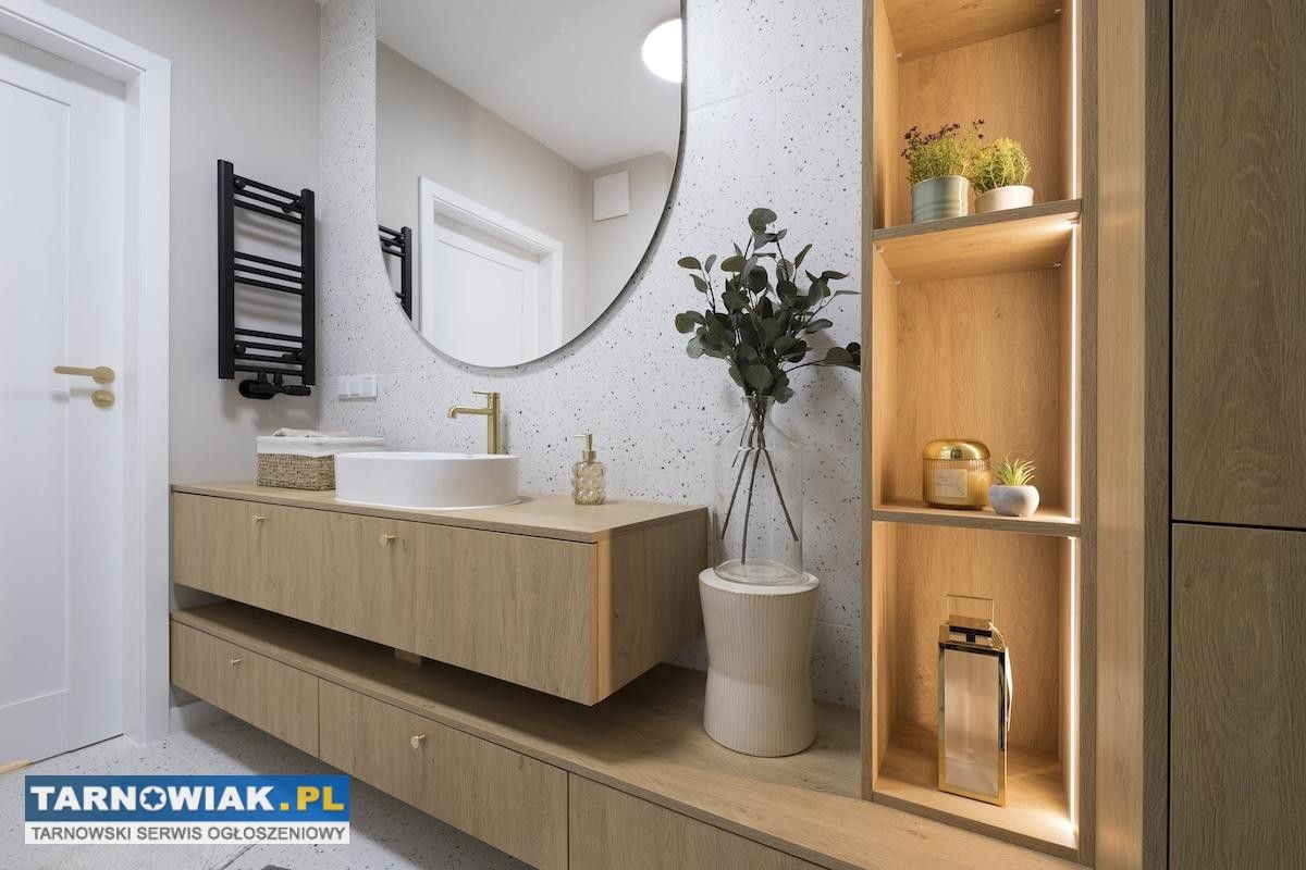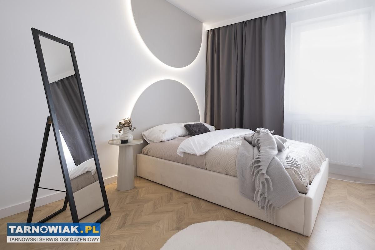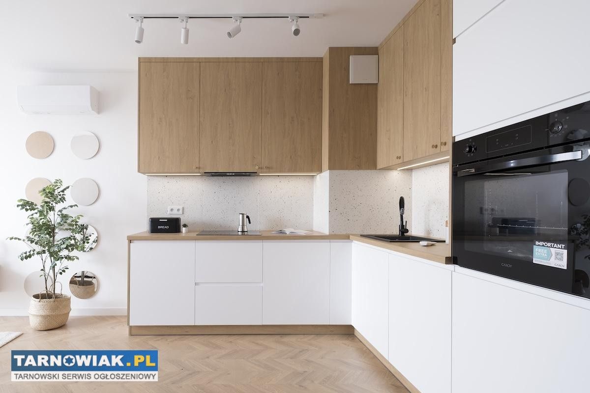 Prezentujemy wyjątkowe mieszkanie o powierzchni 43,3 m², położone w nowoczesnym budynku przy ul. Wieniawskiego w Tarnowie. To przestrzeń zaprojektowana z myślą o osobach, które cenią ponadczasową elegancję, funkcjonalność i wysoki standard wykończenia. Nieruchomość znajduje się na czwartym piętrze nowego budynku z windą. Już od progu widać staranność projektu – harmonia proporcji, spójność materiałów i subtelne detale tworzą wnętrze, które łączy nowoczesność z przytulnością. Rozkład pomieszczeń: przestronny salon z aneksem kuchennym, elegancka sypialnia, łazienka z prysznicem,funkcjonalny przedpokój,przestronny balkon z widokiem na otoczenie.Kuchnia oraz zabudowy meblowe zostały wykonane na indywidualne zamówienie przez stolarza, dzięki czemu wnętrze zyskało niepowtarzalny charakter. Sypialnia zachwyca subtelnym oświetleniem LED w formie dekoracyjnych łuków, które podkreślają elegancję i wprowadzają wyjątkowy nastrój. Dominują tu ciepłe odcienie beżu, złamanej bieli i naturalnego drewna, przełamane szlachetnym lastryko. W łazience zaprojektowano kabinę prysznicową, pojemną zabudowę i efektowne detale, które tworzą wrażenie spójnej całości. W przedpokoju znajdziemy praktyczną szafę w zabudowie, a komfort codziennego użytkowania podnosi zaistalowana klimatyzacja.Do mieszkania przynależy piwnica oraz miejsce postojowe przed budynkiem. Istnieje możliwość dokupienia garażu. Budynek zasilany jest ogrzewaniem miejskim, co zapewnia wygodę i ekonomiczne utrzymanie.
