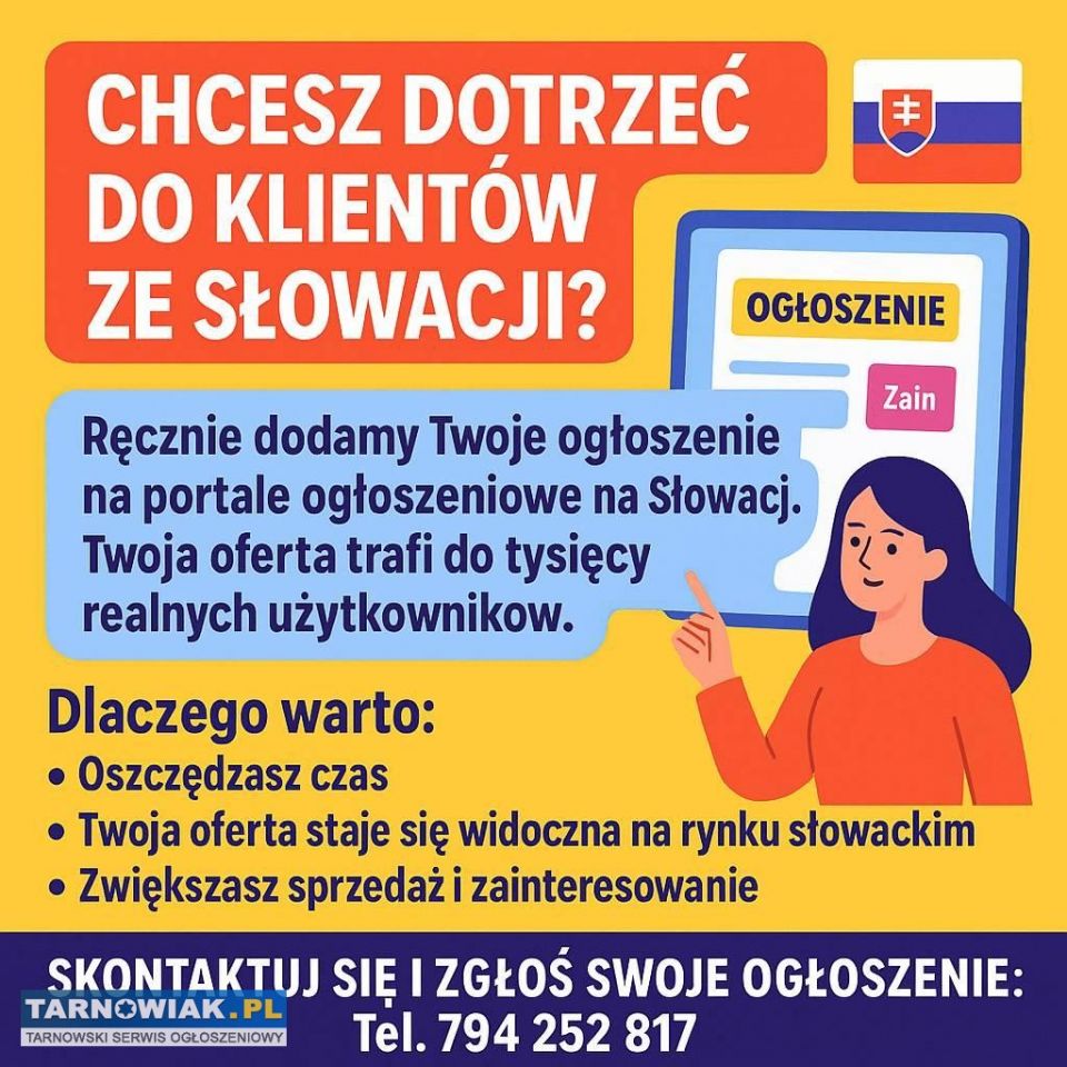 ogłoszenia na Słowacji | reklama na Słowacji | dodawanie ogłoszeń Słowacja | ogłoszenia po słowacku | Publikacja ogłoszeń Słowacja | promocja na rynek słowacki | oferta dla klientów ze Słowacji | Sprzedaż na Słowację | dotarcie do klientów słowackich