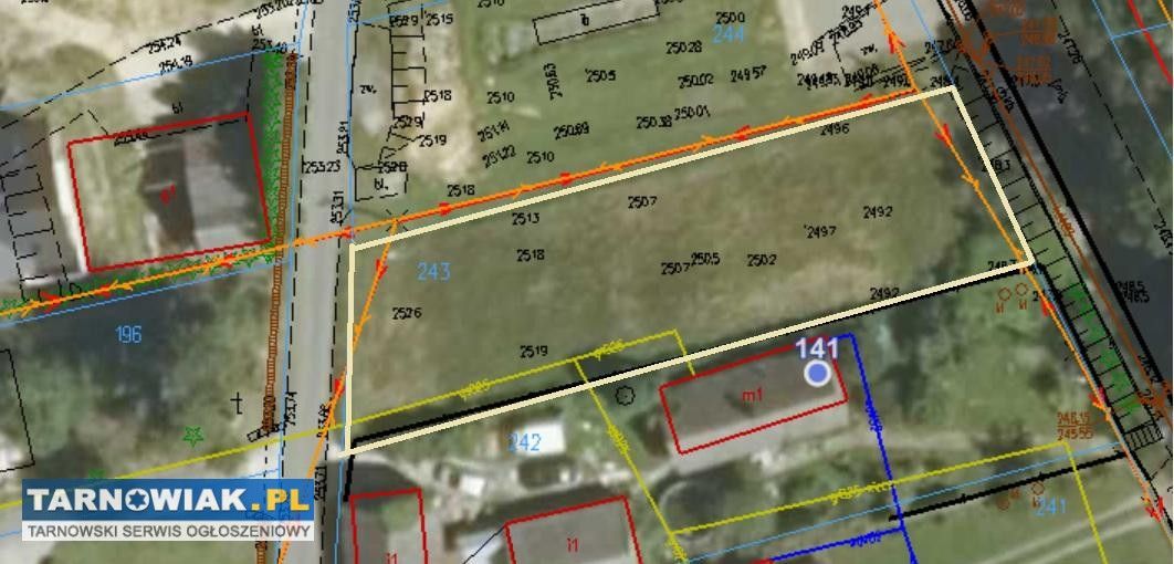 Na sprzedaż przedstawiam działkę budowlaną o numerze ewidencyjnym 243, położoną w Dołach, gmina Dębno, powiat brzeski, w województwie małopolskim.