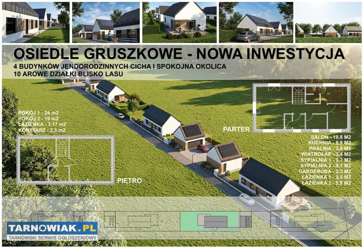 W tym ogłoszeniu poszukujemy chętnych osób prywatnych, inwestorów, deweloperów będących na kupnie działki/domu, który mogą wybudować razem z nami, a zagospodarowanie wyglądać może tak jak na załączonej grafice. Inwestycja jest na etapie projektowania i uzyskiwania pozwolenia na budowę. Trwają procedury tworzenia dokumentacji przyłączenia do sieci wod-kan, gazowej i prądowej. Każda z działek będzie miała około 10 ar. Droga wewnętrzna łączy się bezpośrednio z drogą powiatową relacji Dąbrowa Tarnowska- Sutków. Inwestycja mieści się 5 km od centrum Dąbrowy Tarnowskiej. Każdy z domów stanowić będzie oddzielne gospodarstwo domowe.