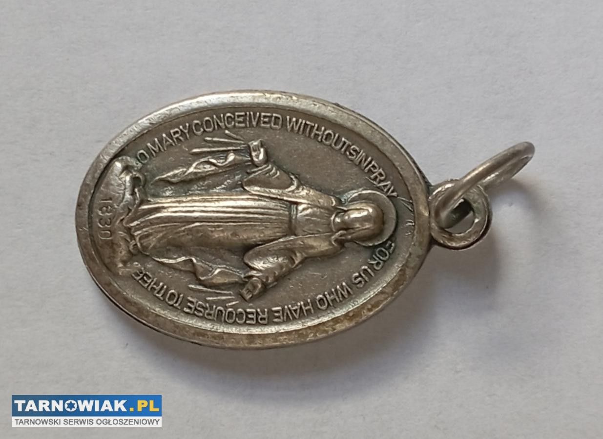 Antyczny religijny medalion katolicki z wizerunkiem świętego Jerzego i Maryi Panny objawionej w 1830