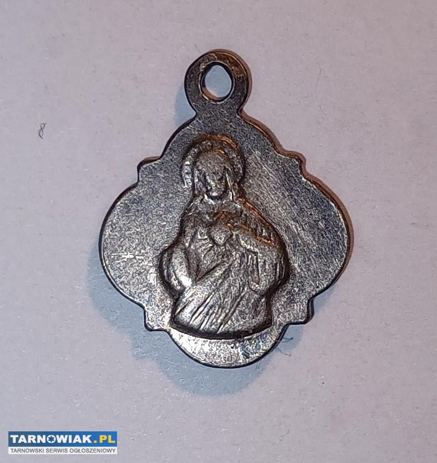 Stary posrebrzany medalik vintage Matka Boska Częstochowska Serce Jezusa PRL