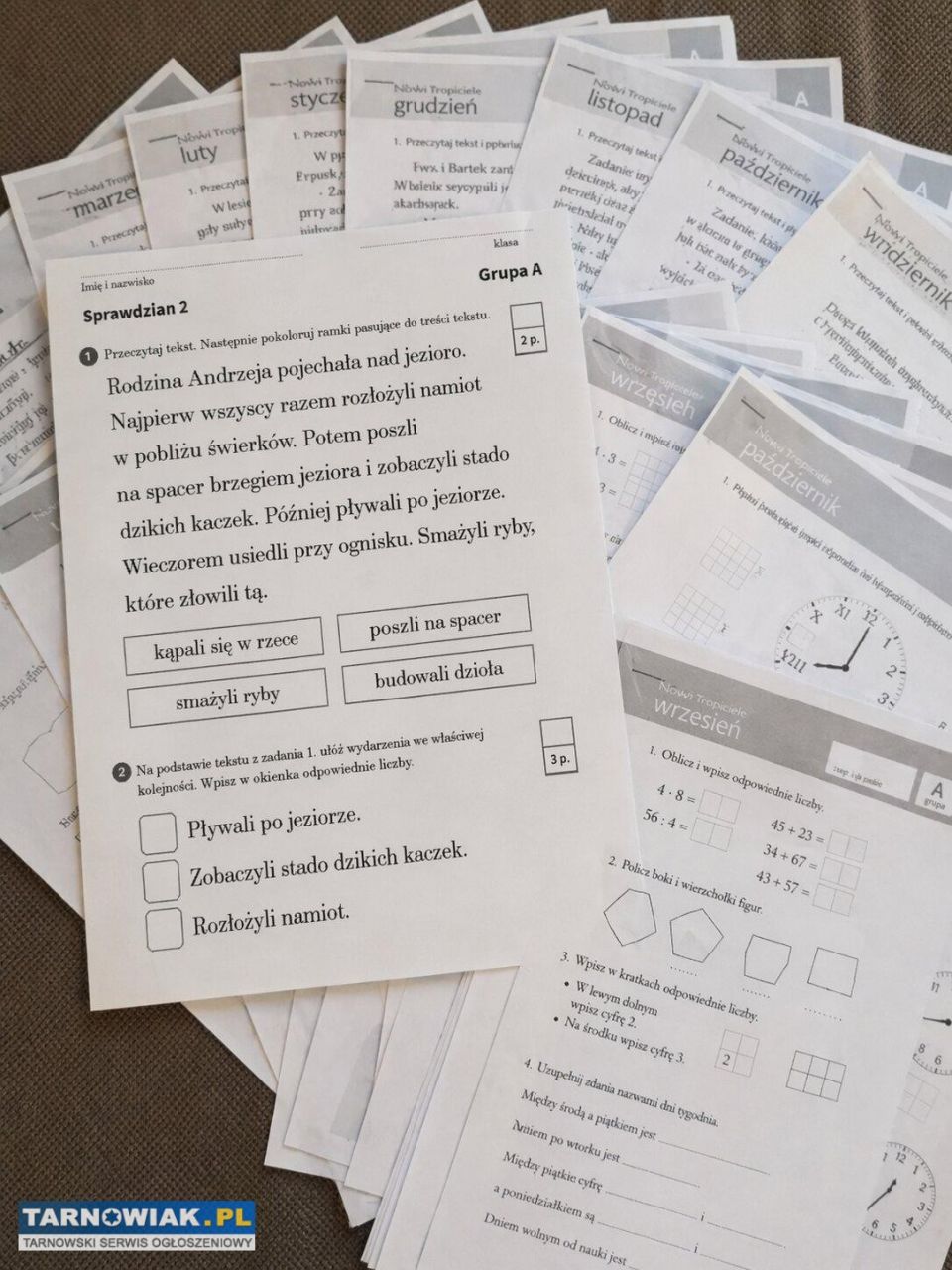- karty miesięczne, generatory, kartkówki i sprawdziany z języka polskiego i matematyki