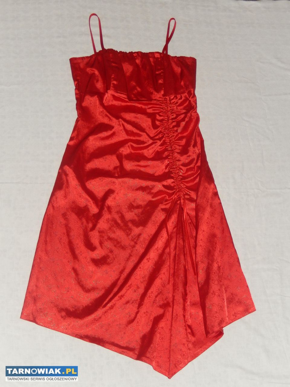 Sprzedam sukienkę na ramiączkach, satynową w kolorze czerwonym.