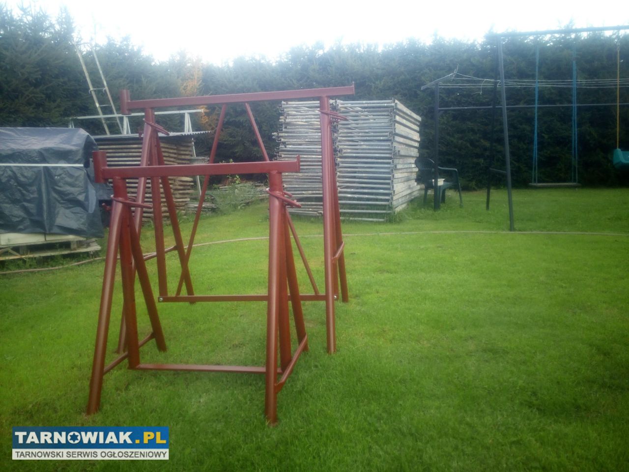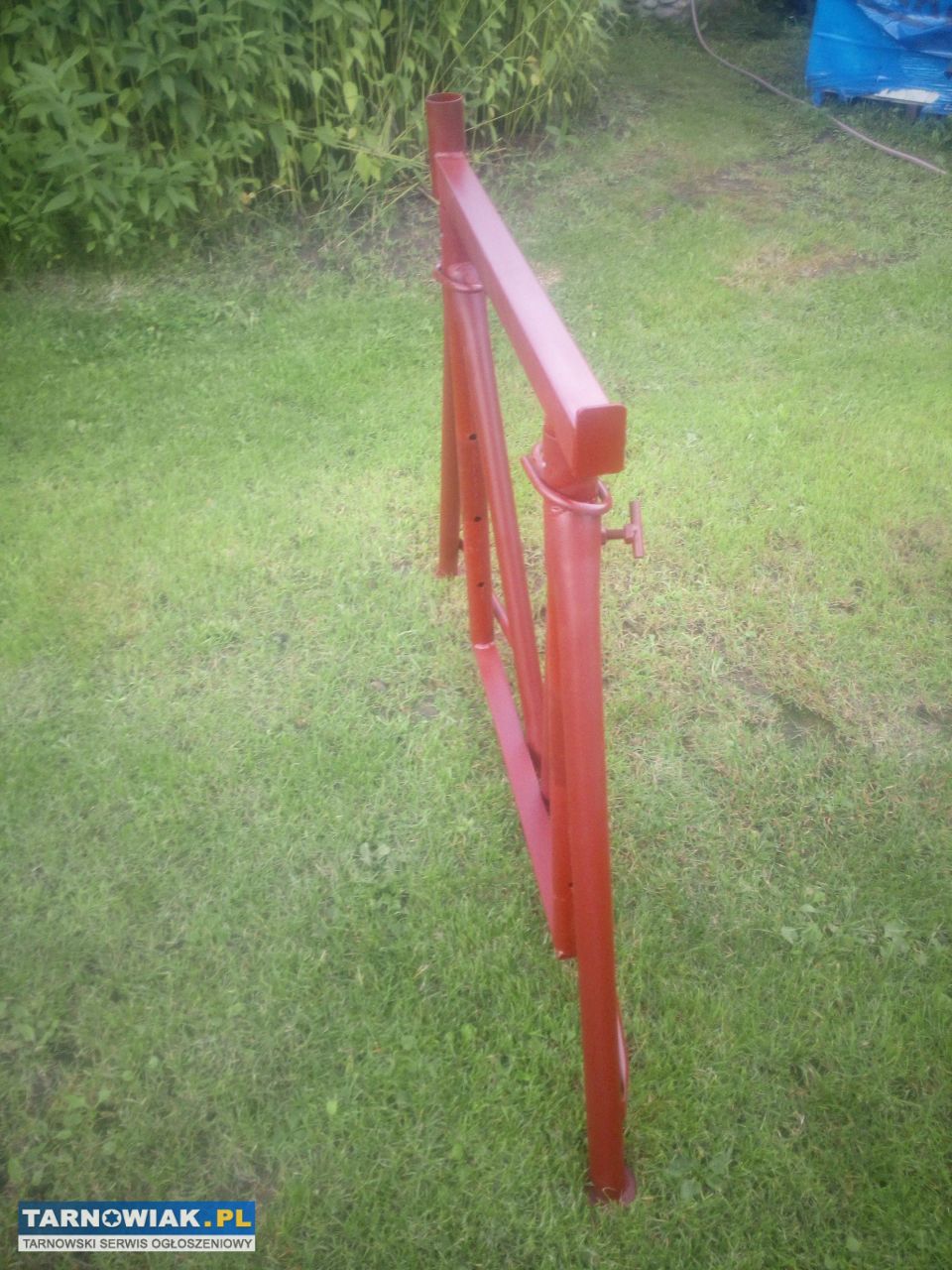 Oferuje kobyłki budowlane z regulacją wysokości od 1,2 do 2,0 m co 15 cm. Składają sie do transportu i magazynowania. Szerokość robocza 115 cm. Kozły znajdują szerokie zastosowanie w budownictwie do murowania,tynkowania,elewacki,podbitek,prac zbrojarskich.Możliwe inne wymiary.