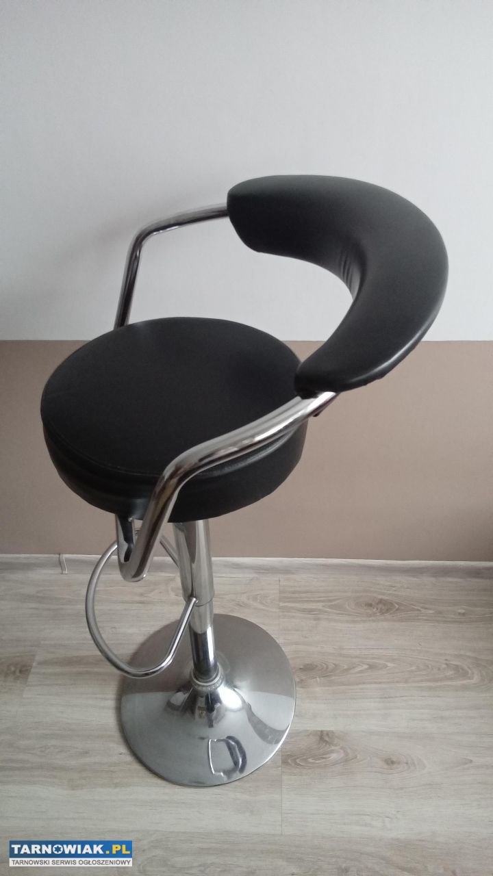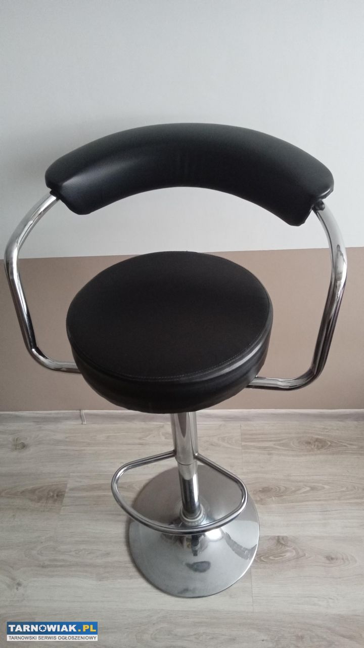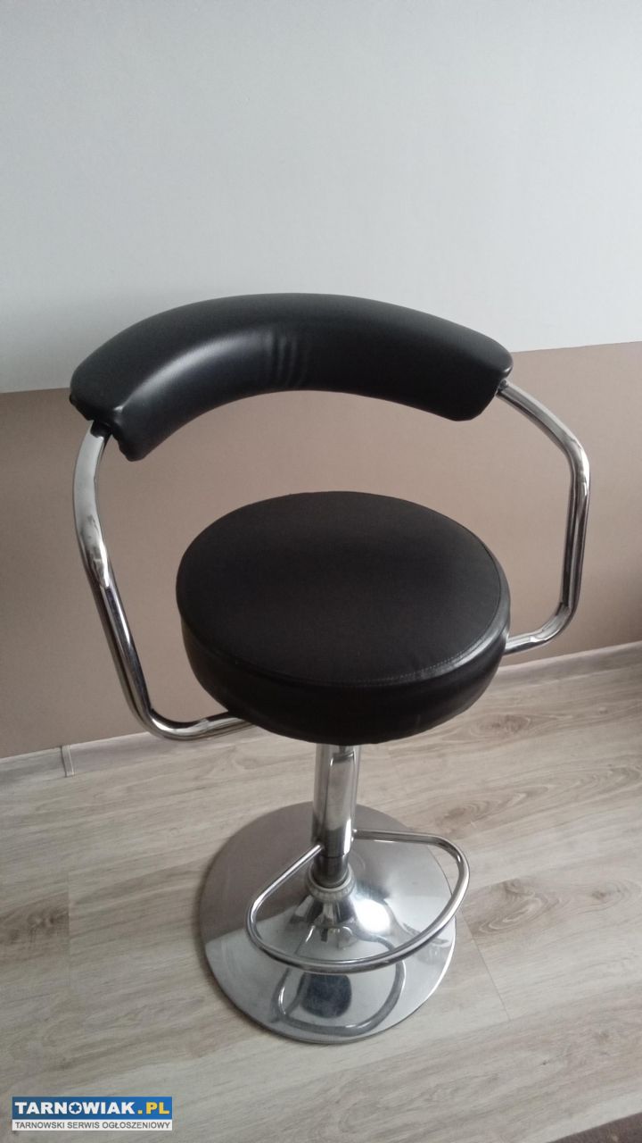 Regulowany z oparciem i podnóżkiem czarny hoker jak nowy na bardzo stabilnej stopce,wysokość do oparcia obniżony 80cm,max 110cm,do siedziska 64cm,max 86cm,średnica siedziska 35cm,wysokość 8cm,odległość oparcia od prawej do lewej 52cm.Obicie tapicerowane ekoskórą,obrotowe 360stopni,przydatny w kuchni ,aneksie jadalnym,biurze,barze,restauracji,przy barku,koszt nowego to koło 150zł, sprzedam za 70zł