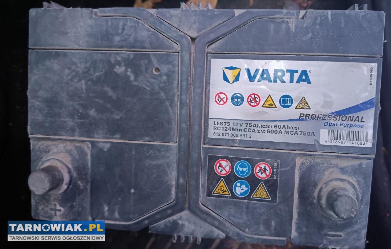 Sprzedam używany akumulator samochodowy Varta o wymiarach25x17x20cm (dł szer. wys) o napięciu 12V prądzie rozruchowym 600A i pojemności 60Ah.