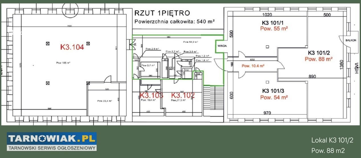 Wynajmę lokal biurowy/ usługowy K3 101/2 - 88m2 na ul. Kochanowskiego, Tarnów
