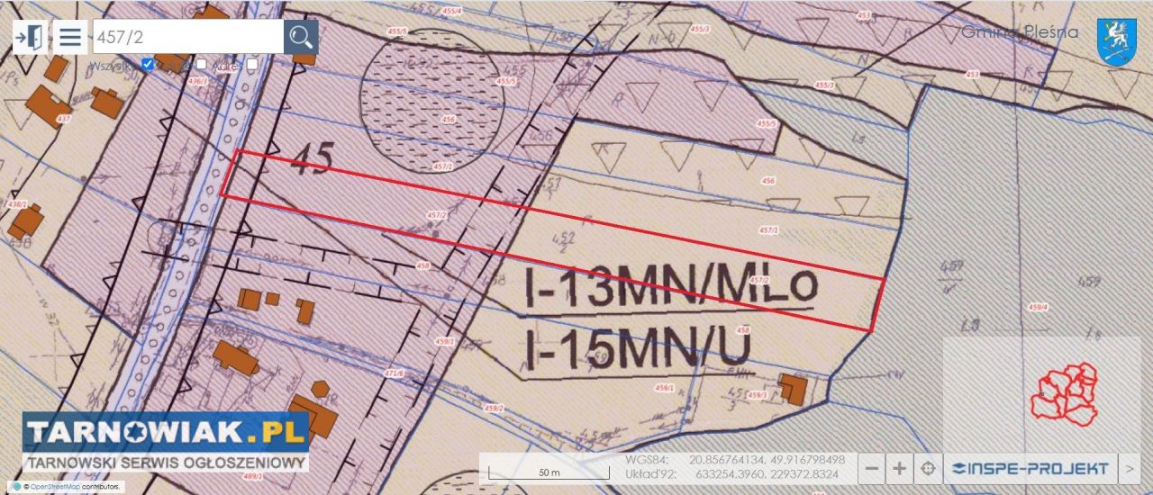 Teren objęty miejscowym planem zagospodarowania przestrzennego Gminy Pleśna z przeznaczeniem pod budownictwo mieszkalne jednorodzinne lub rekreację.