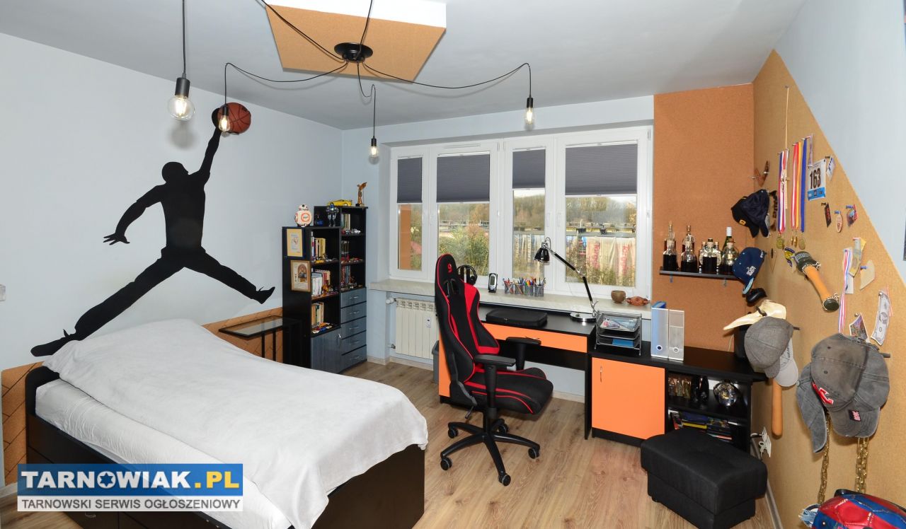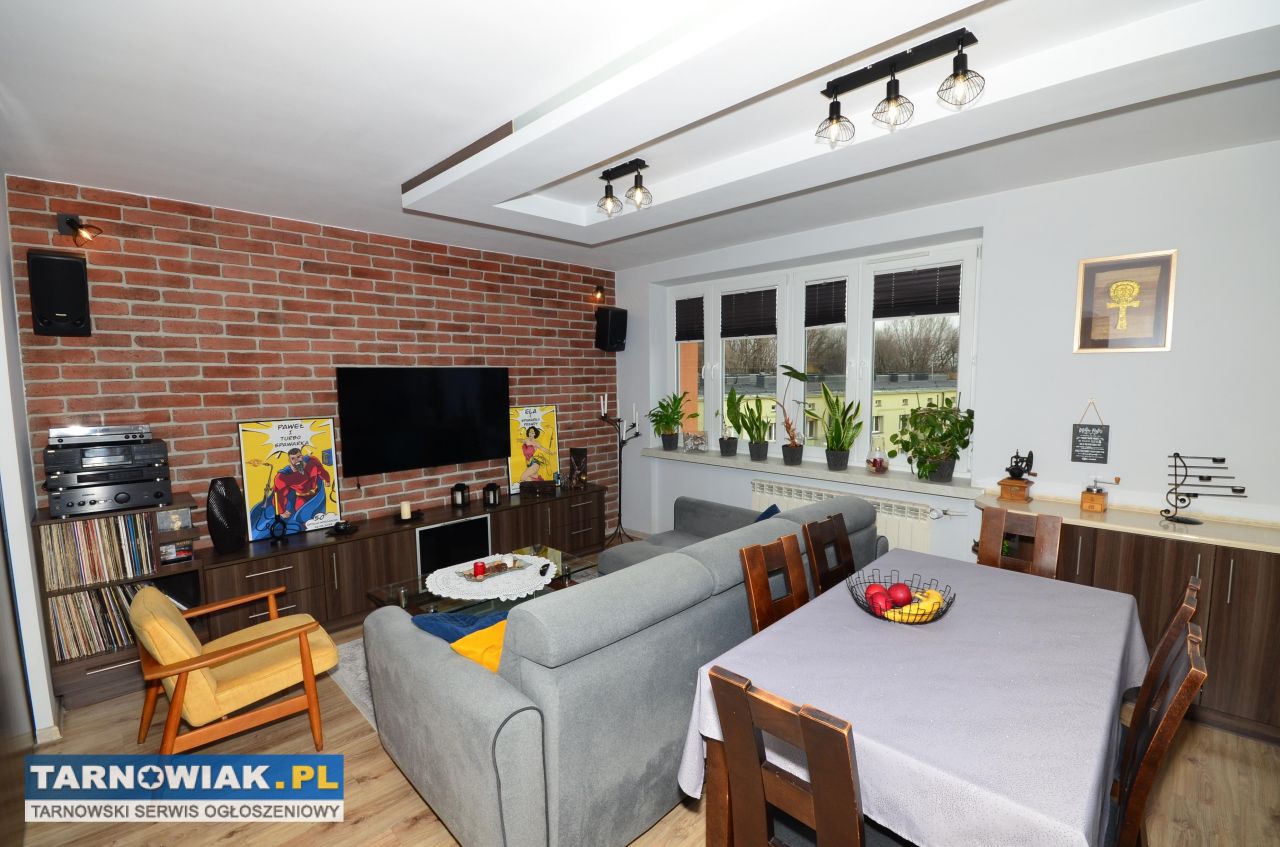Powierzchnia 70 m2. Składa się z czterech pokoi, kuchni, łazienki, oddzielnego WC i przedpokoju. Leży na IV piętrze czteropiętrowego bloku. Lokal umeblowany i wyposażony we wszystkie potrzebne AGD. Atutem tego mieszkania jest doskonałe rozmieszczenie pomieszczeń co daje wrażenie ogromnej przestrzeni. Kuchnia w pełni wyposażona z wydzielonym aneksem jadalnym. Ogromny salon z wyjściem do sypialni i dwa mniejsze pokoje z czego jeden ma balkon. Łazienka z wanną i szklanym parawanem wyposażona w pralkę i suszarkę bębnową. Duży przedpokój.