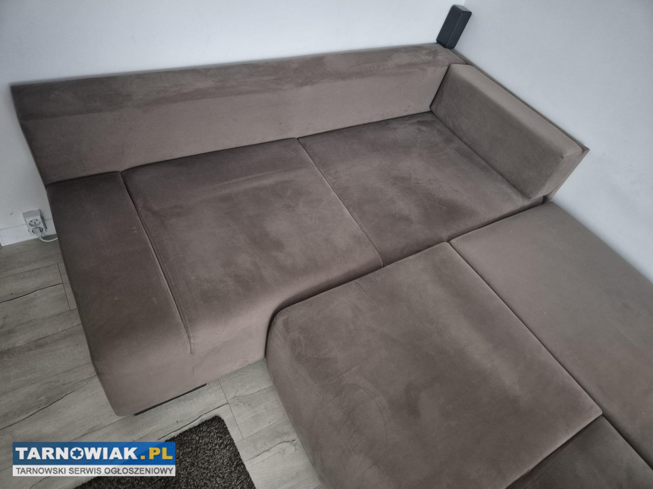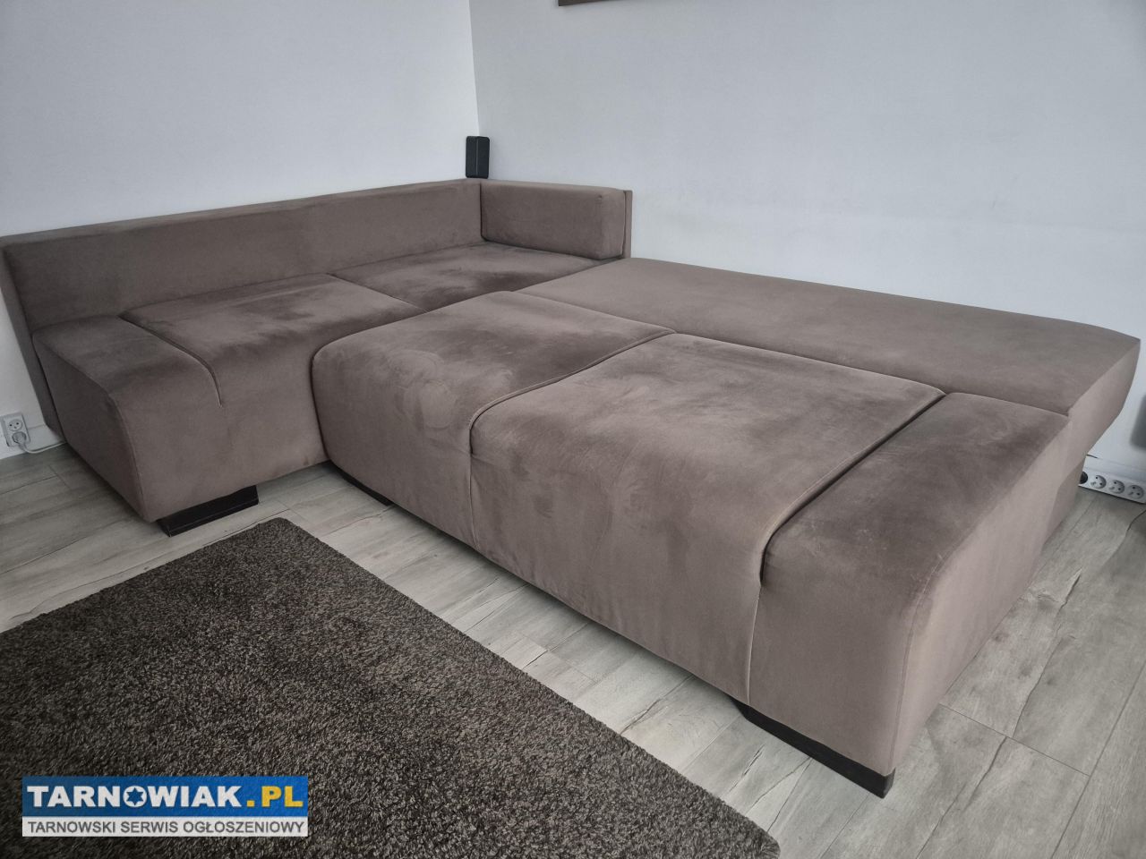 Wygodny i funkcjonalny narożnik w kolorze brązowym. Mebel jest w bardzo dobrym stanie. Solidna konstrukcja. Automat otwierania i zamykania działa bez zarzutów. Tapicerka w stanie bardzo dobrym. Posiada pojemnik na pościel. Z funkcją spania.