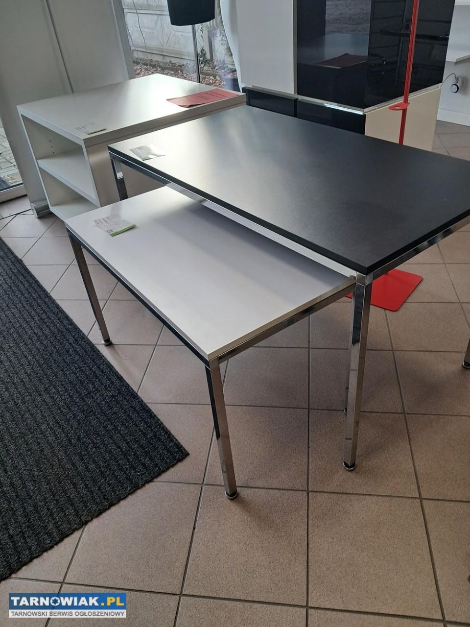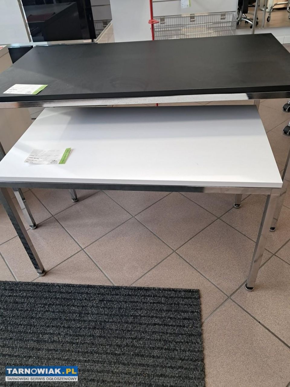 Zestaw 2 szt. stolików ekspozycyjnych płyta laminowana 18 mm i stal chromowana .