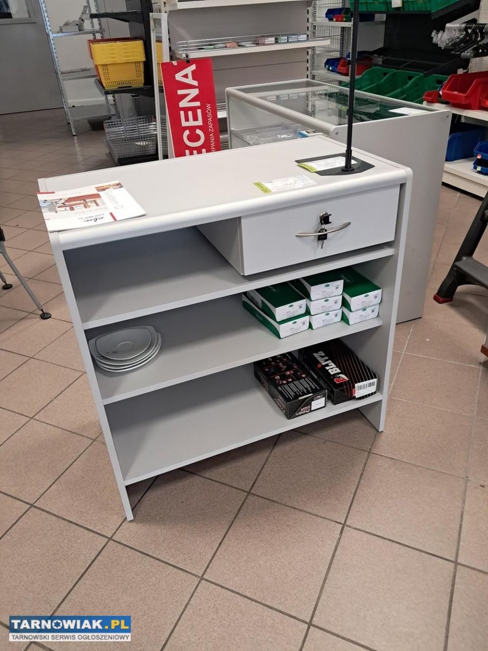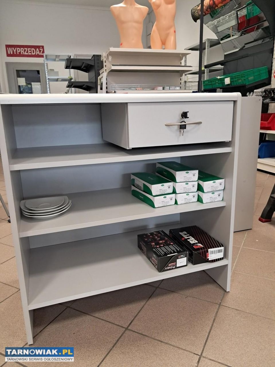 Szuflada z zamkiem plus jedna półka . Przeznaczona do sklepów spożywczych i wielobranżowych .
