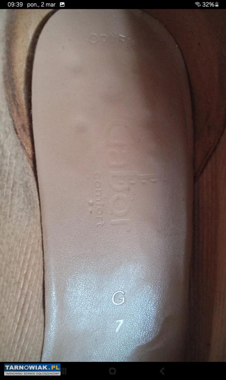 Ciemno beżowe wygodne czółenka ze sprzączką renomowanej firmy Gabor ze skórzaną wkładką na małym obcasie o wysokości 4cm ,zewnatrz obszyte gumką co pozwala na wygodne wkładanie i dopasowanie się do stopy,rozmiar 41 długość wkładki 26,5cm koszt nowych to ponad 300zl sprzedam za 55zl