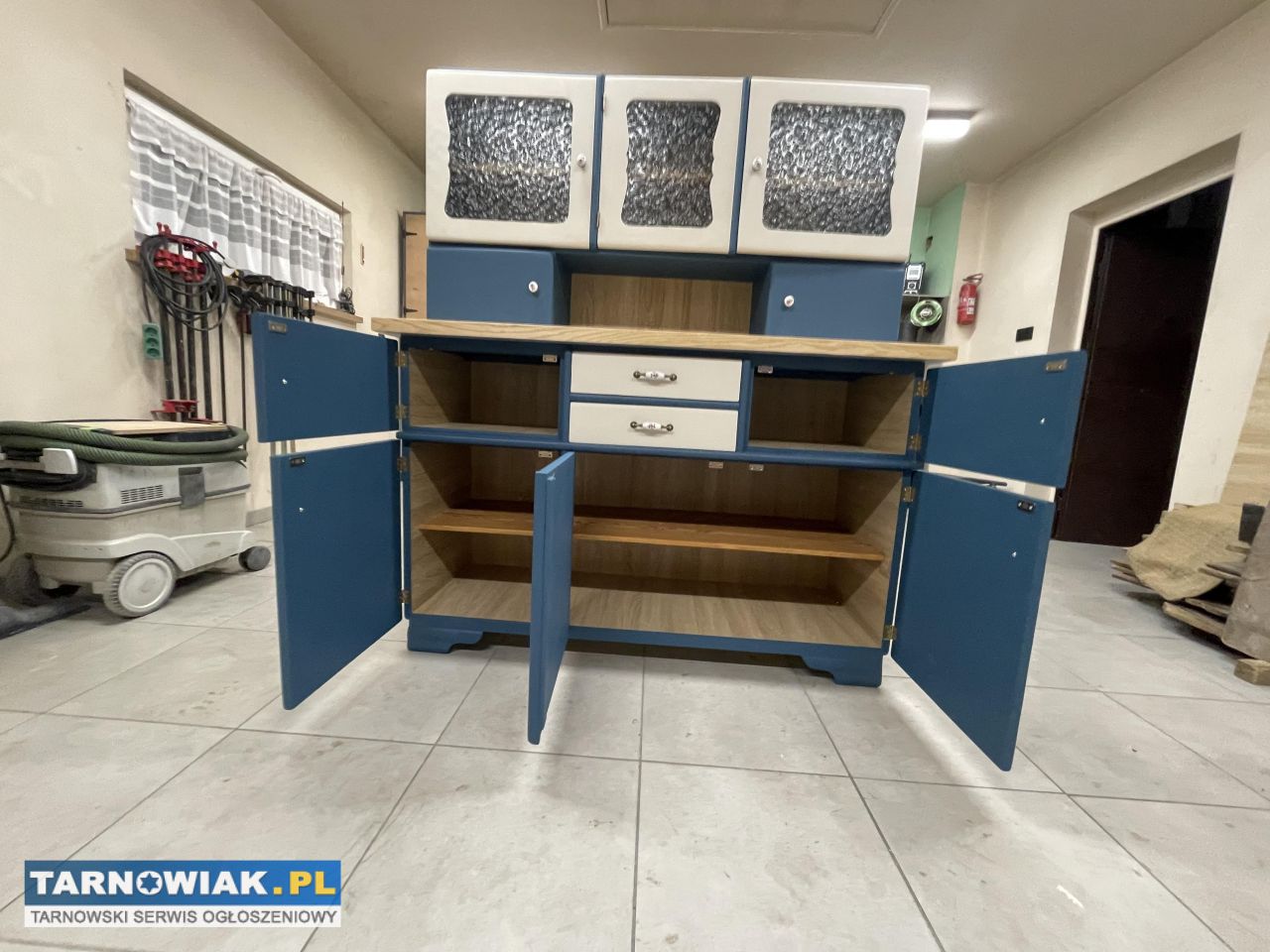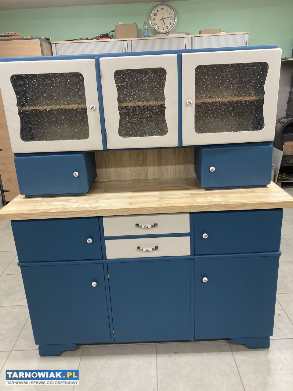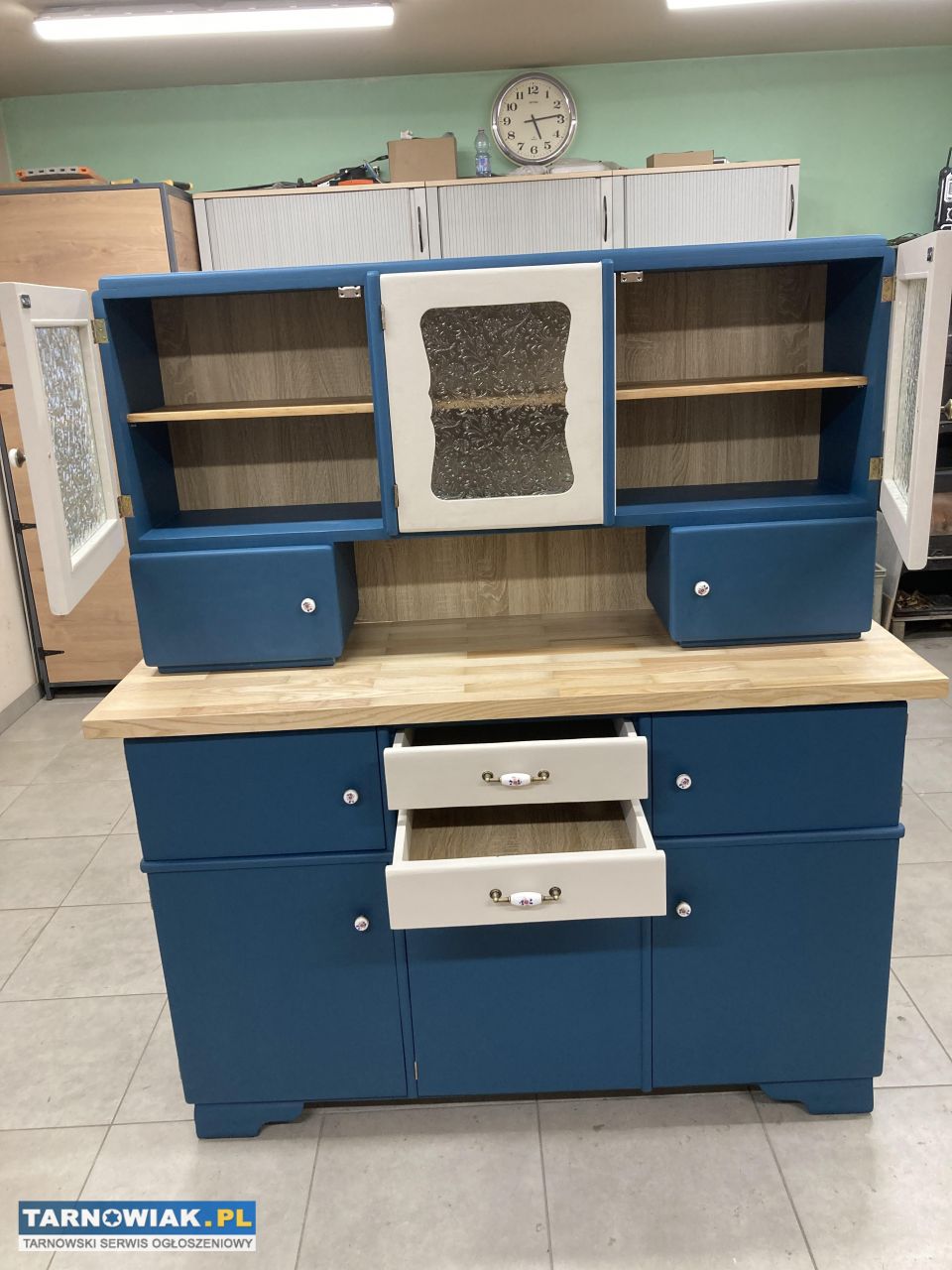 Sprzedam kredens kuchenny z lat siedemdziesiątych po gruntowej renowacji.Wszystko zostało wyczyszczone, wyszlifowane, wyszpachlowane i pomalowane. Plecy i wszystkie środki wstawione nowe.Blat kredensu zrobiony z klepek jesionowych, zaolejowany olejem do blatów. Reszta do zobaczenia na miejscu, w razie pytań proszę dzwonić. ZAPRASZAM!