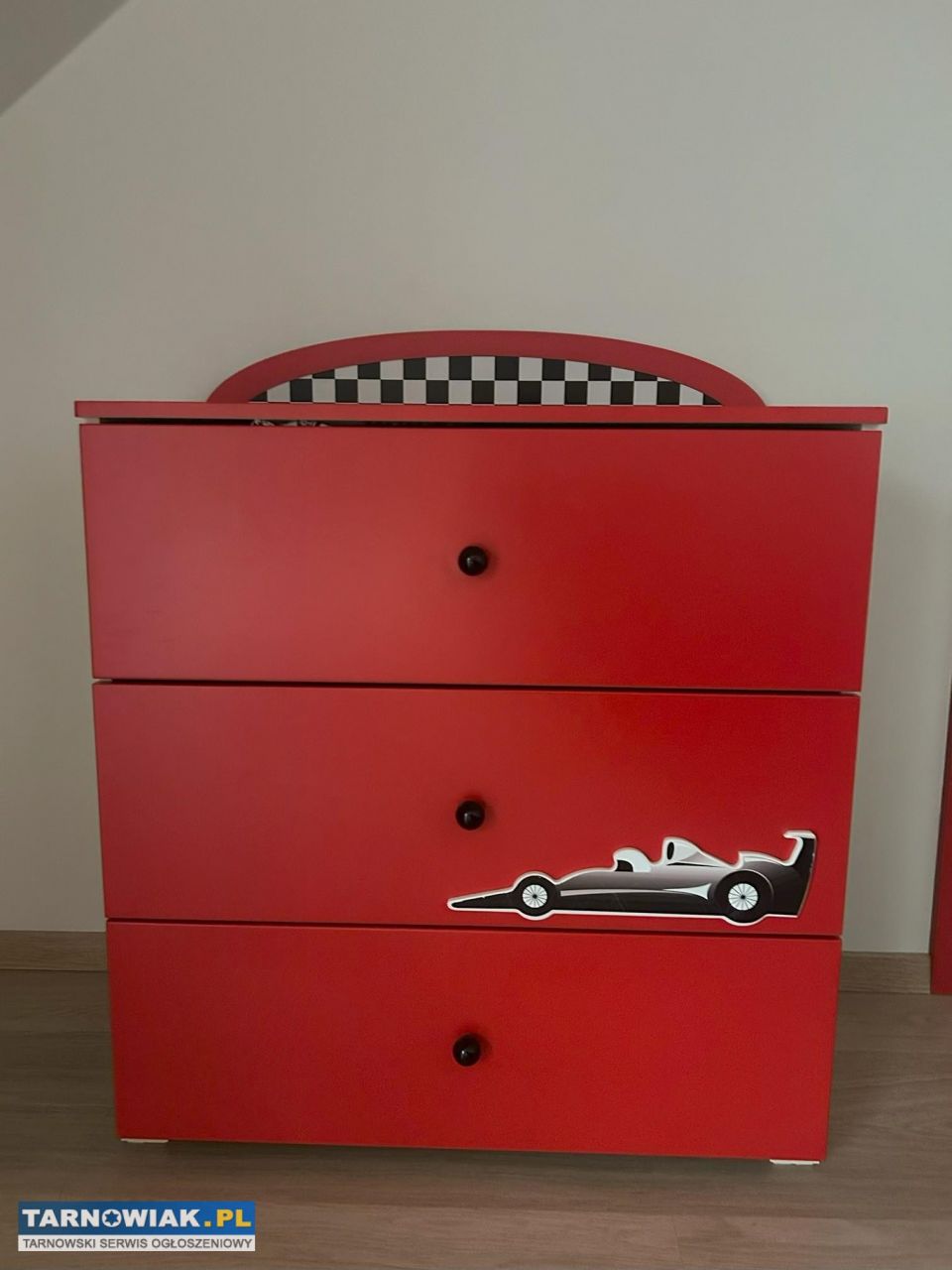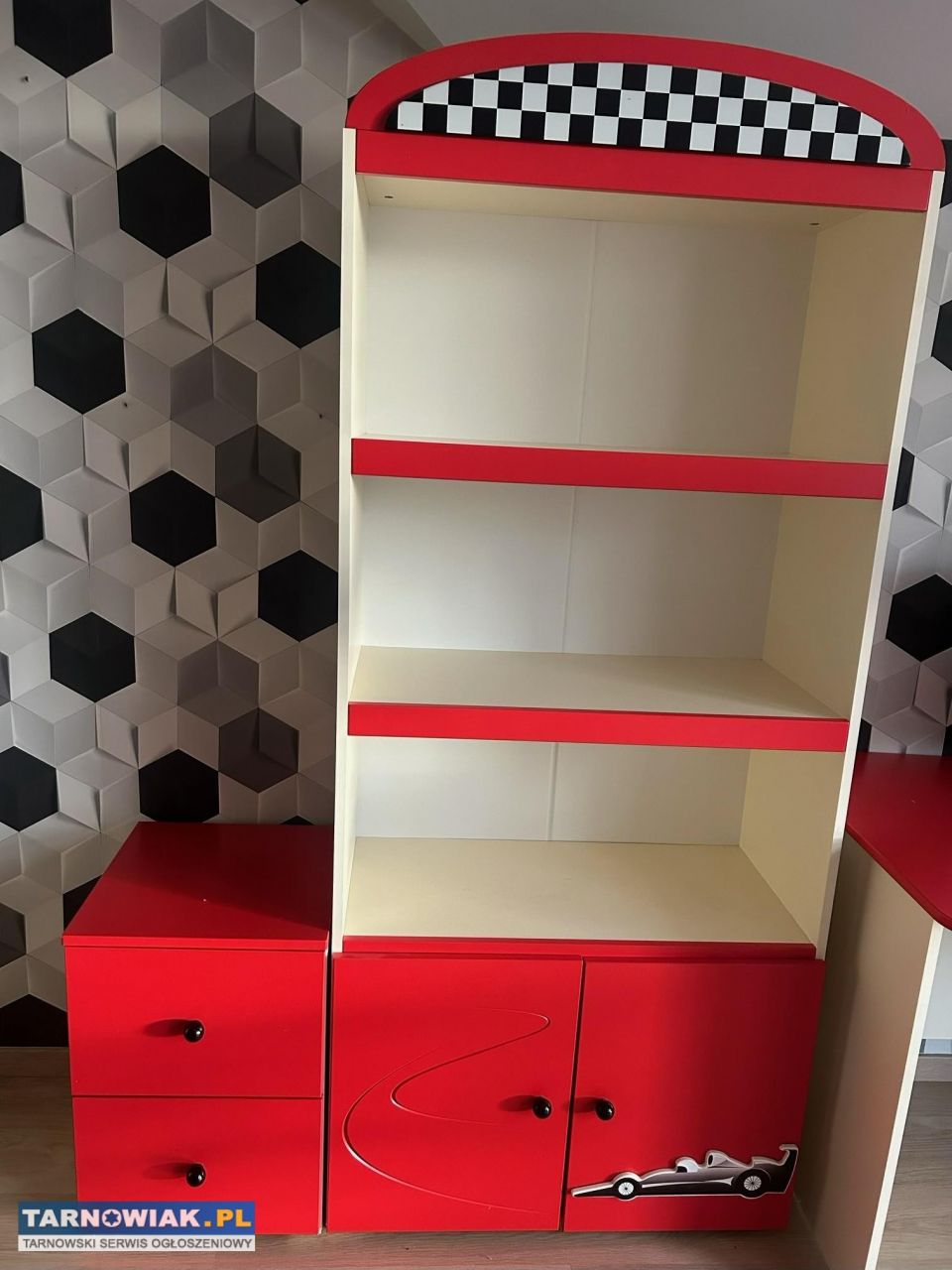 łóżko, komoda, szafa-regał, biurko, szafka mała.