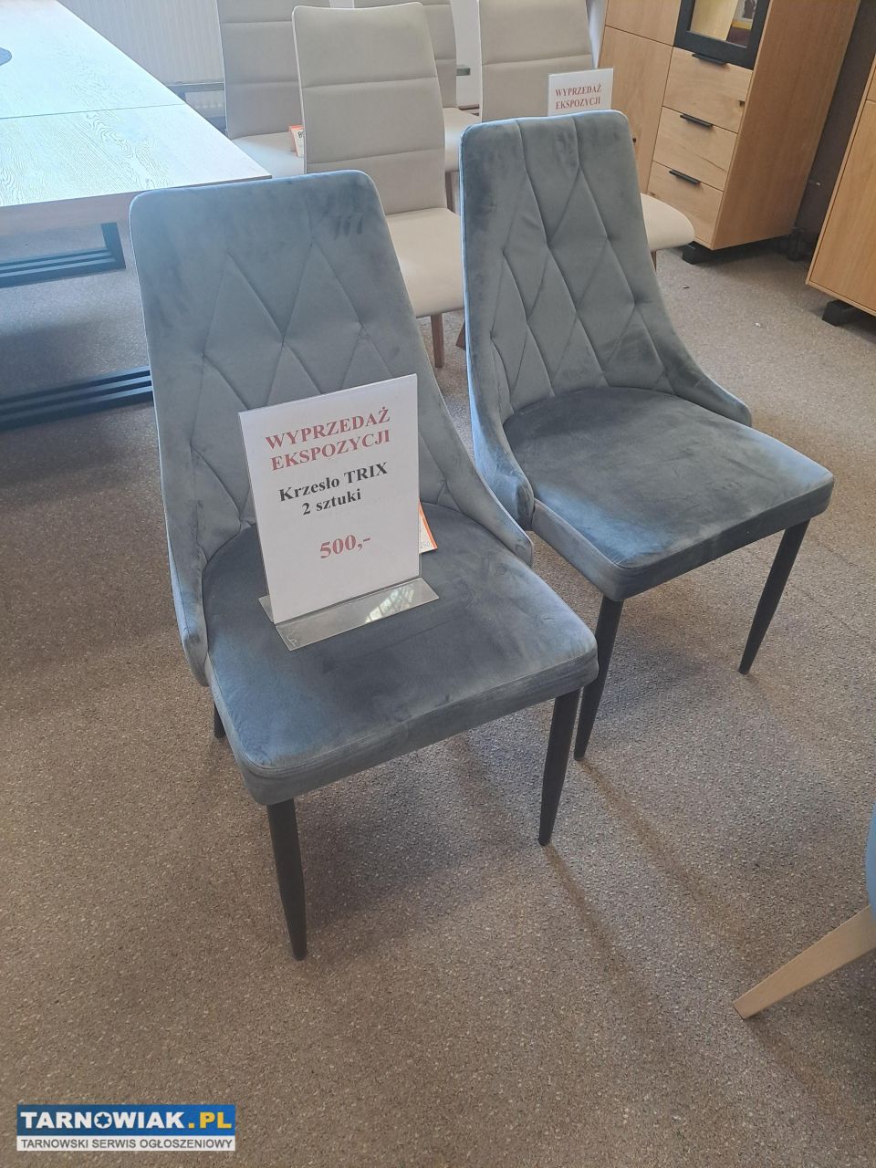 Do wyprzedaży nowe krzesła x 2szt z ekspozycji. Krzesła tapicerowane w kolorze szarym.