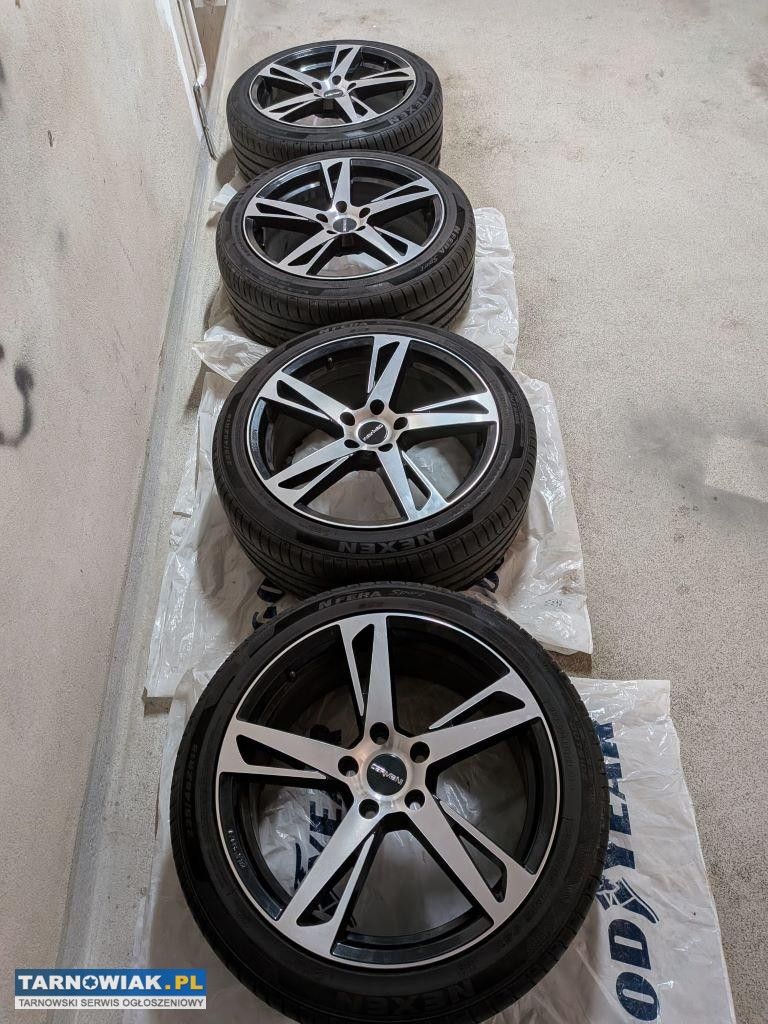 Sprzedam alufelgi CARMANI 16 Anton czarny polerowany 18", rozstaw otworów na śruby 5x114.30, 8.00 x 18 ET 45.00. Felgi były założone na Hyundai i40. Na alufelgach są opony NEXEN NFERA Sport 225/45/R18 - bardzo mały przebieg ok. 8 tyś.km. Data produkcji opon to 8 tydzień 2025 r. co widoczne jest na zdjęciach. Opony i felgi zakupione 30 kwietnia 2025 r. - do wglądu posiadam f-rę. Jedna z felg posiada drobne zarysowania oznaczone na zdjęciach. Cena do rozsądnej negocjacji.
