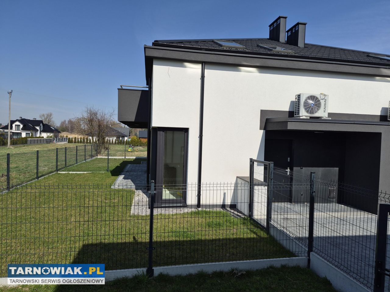 prąd, woda, gaz, kanalizacja, ogrzewanie podłogowe, z pompą ciepła "KAISAI" oraz instalacją fotowoltaiczną 4KV