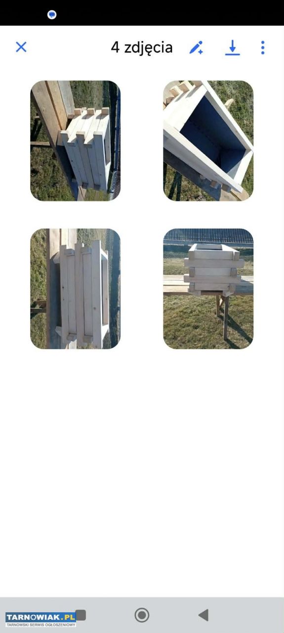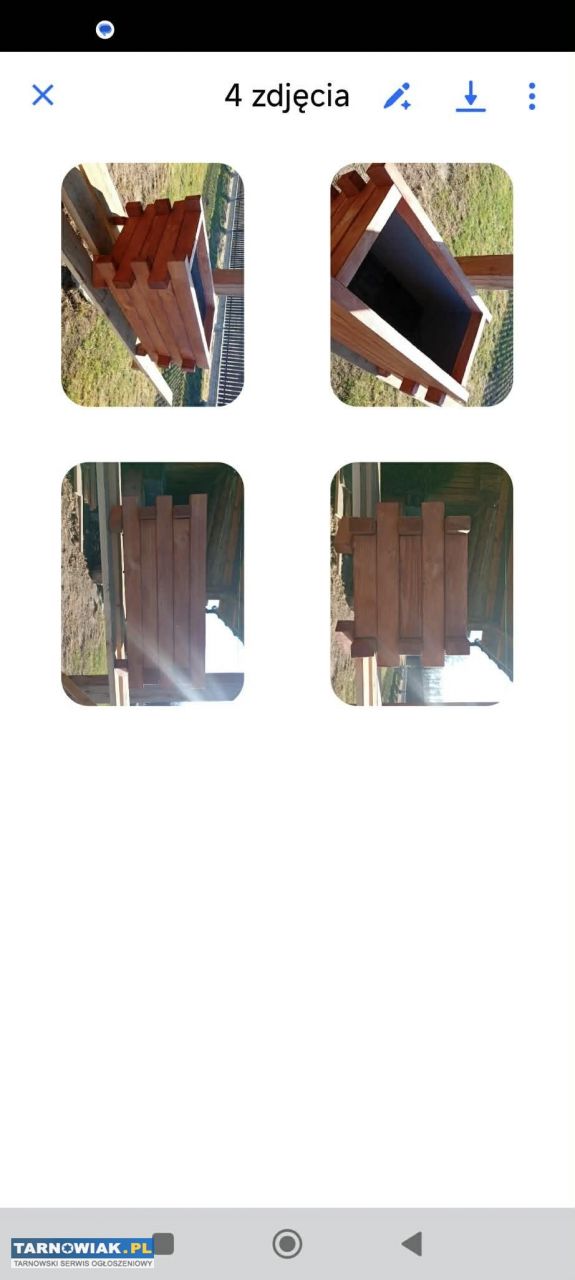 Sprzedam donice z drewna iglastego. Wymiary - długość 80cm szerokość 50 cm. wysokość 40 cm.