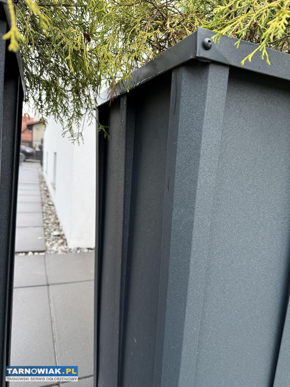 Donice wykonane z blachy na rąbek stojący w kolorze antracytowym. Donica wewnątrz jest wyizolowana styrodurem i włókniną więc rośliny w niej posadzone są zabezpieczone w zimie. Donice były wykonane w konstrukcji stalowej pokryte blachą na rąbek stojący więc mają bardzo nowoczesny wygląd. Świetnie komponują się z domami z dachami z blachy na rąbek.